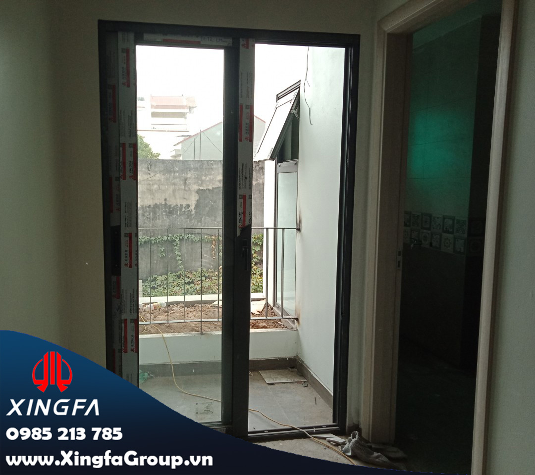 Hình ảnh cửa đi mở trượt nhôm Xingfa có tem đỏ Quảng Đông