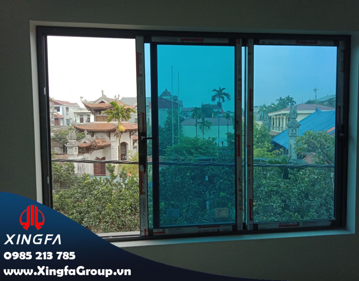 Hình ảnh cửa sổ mở trượt nhôm Xingfa sử dụng kính mầu xanh