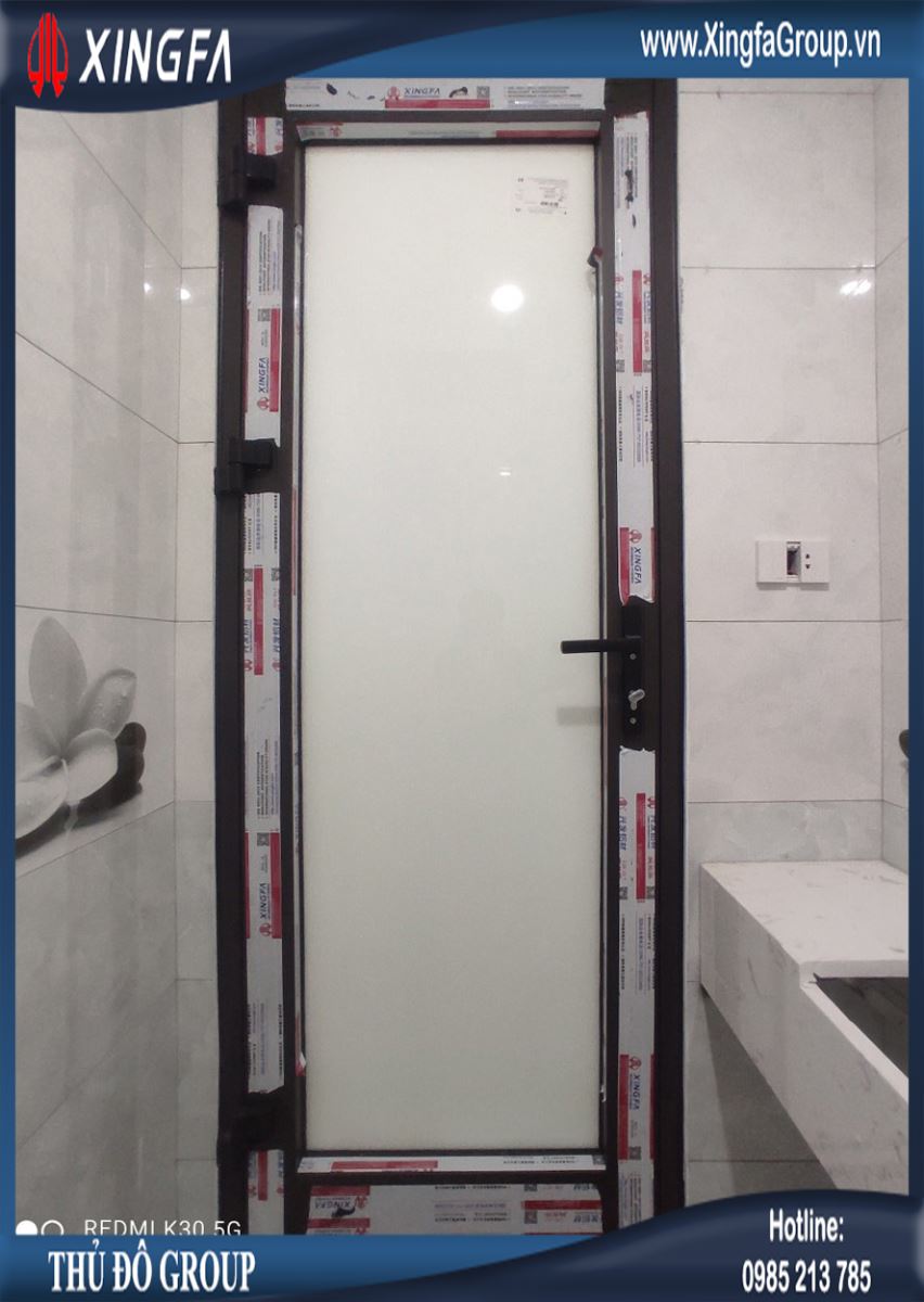 Hình ảnh cửa nhôm Xingfa kính trắng sữa dùng cho phòng tắm, nhà vệ sinh,..