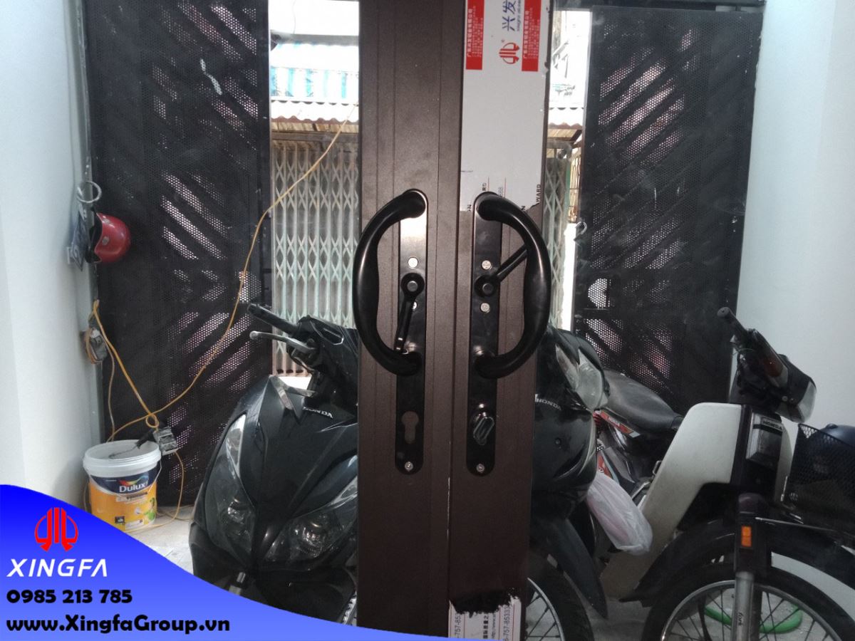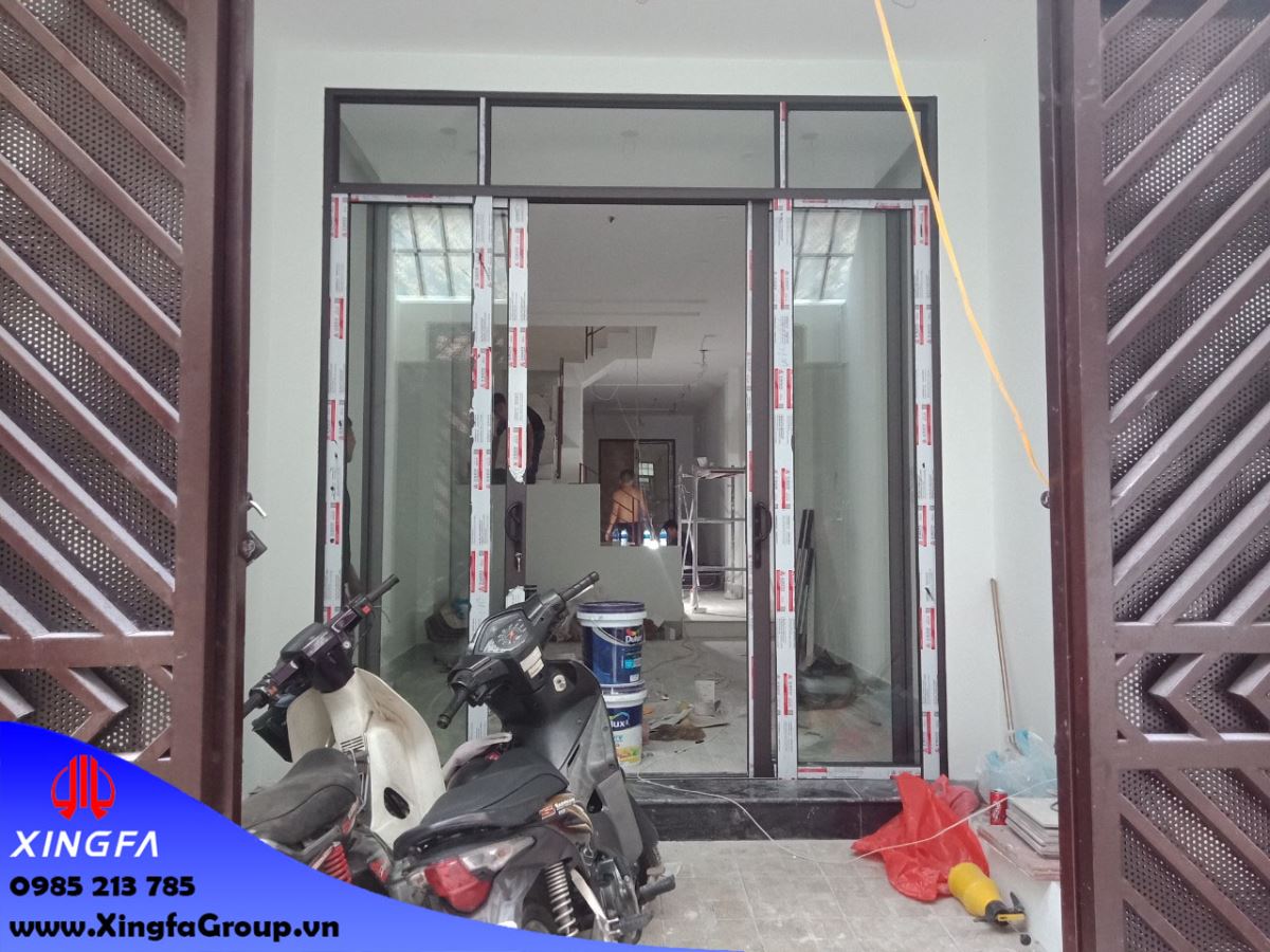 Hình ảnh cửa chính nhà chú Thành là cửa nhôm Xingfa mở trượt