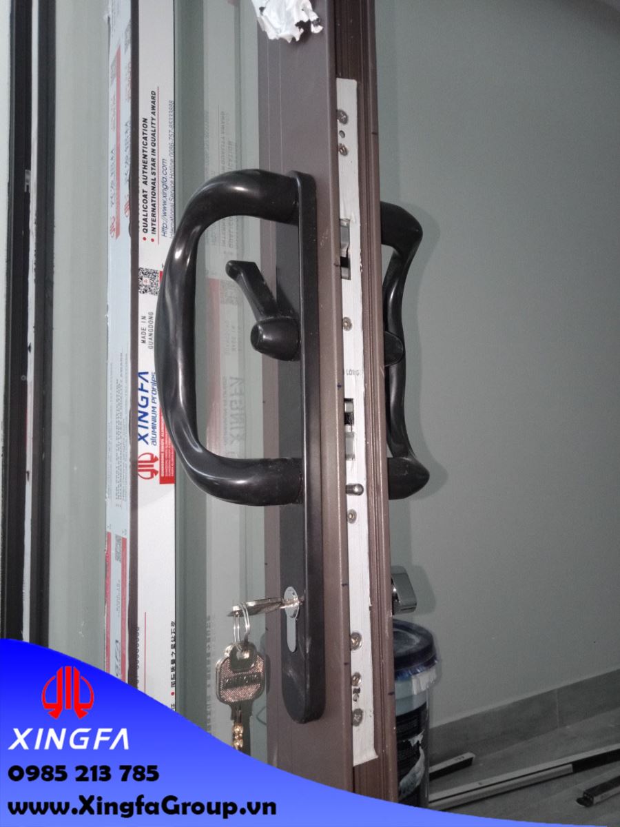 Phụ kiện đi kèm mỗi bộ cửa nhôm Xingfa cũng được chú trọng về chất lượng, với tay nắm và khóa đa điểm của thương hiệu Kinlong cao cấp để cửa có thể sử dụng bền lâu.