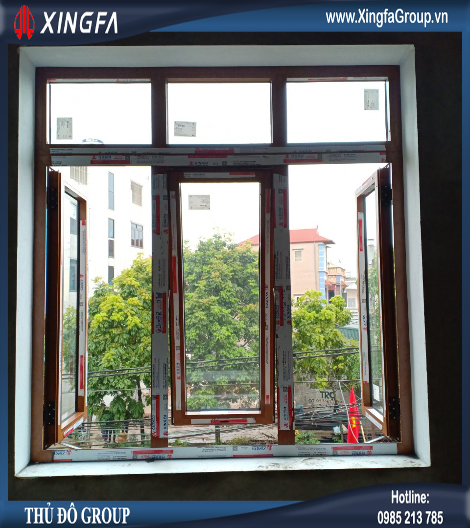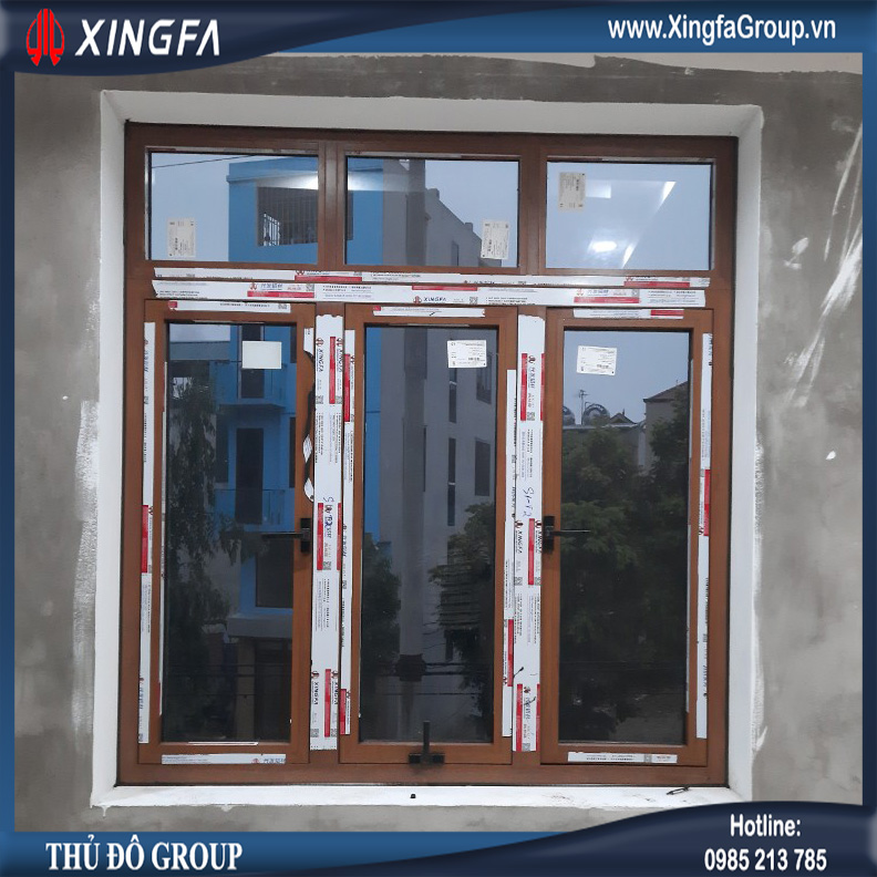 Hình ảnh bộ cửa nhôm Xingfa mở quay kết hợp mở hất mầu vân gỗ