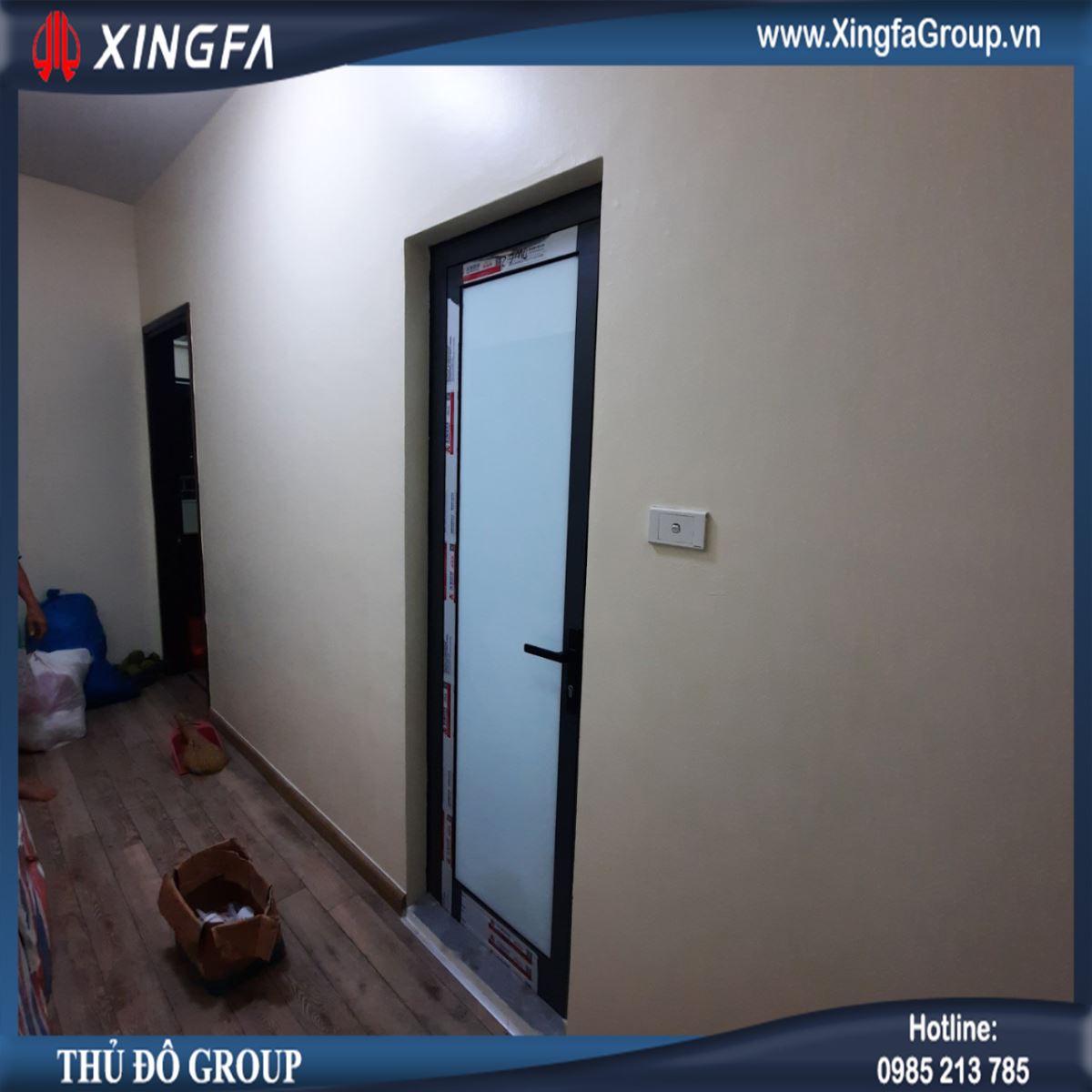 Hình ảnh cửa đi mở quay 1 cánh nhôm Xingfa Thủ Đô Group lắp đặt