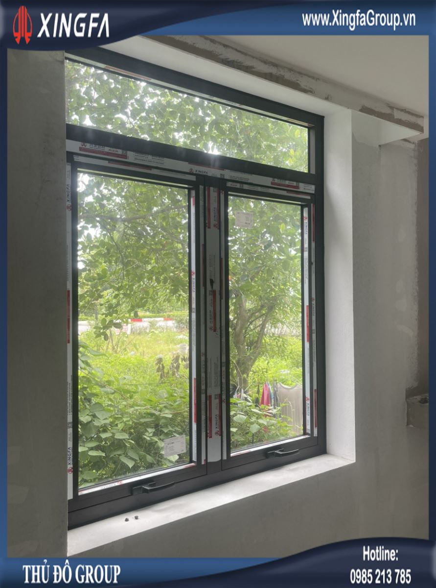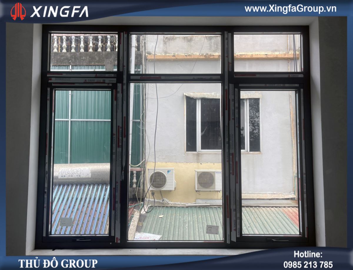 Hình ảnh một bộ cửa sổ mở hất 1 cánh nhôm Xingfa có các vách cố định