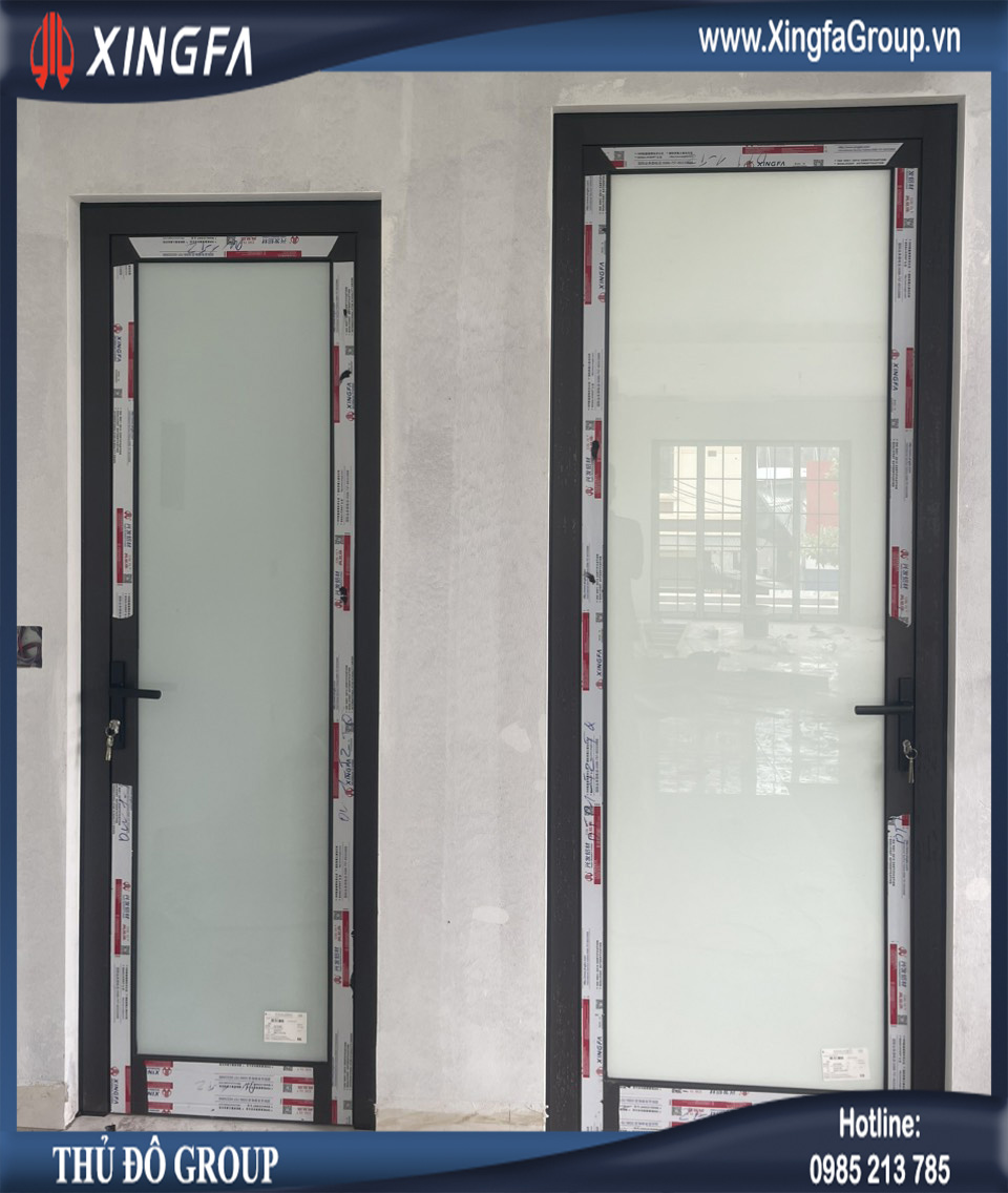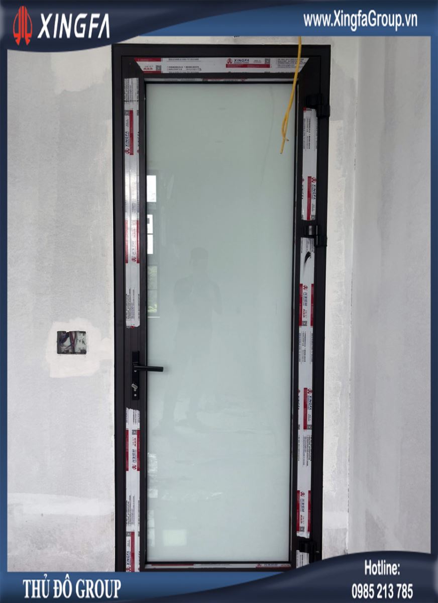 Hình ảnh cửa đi mở quay 1 cánh nhôm Xingfa sử dụng kính màu trắng sữa