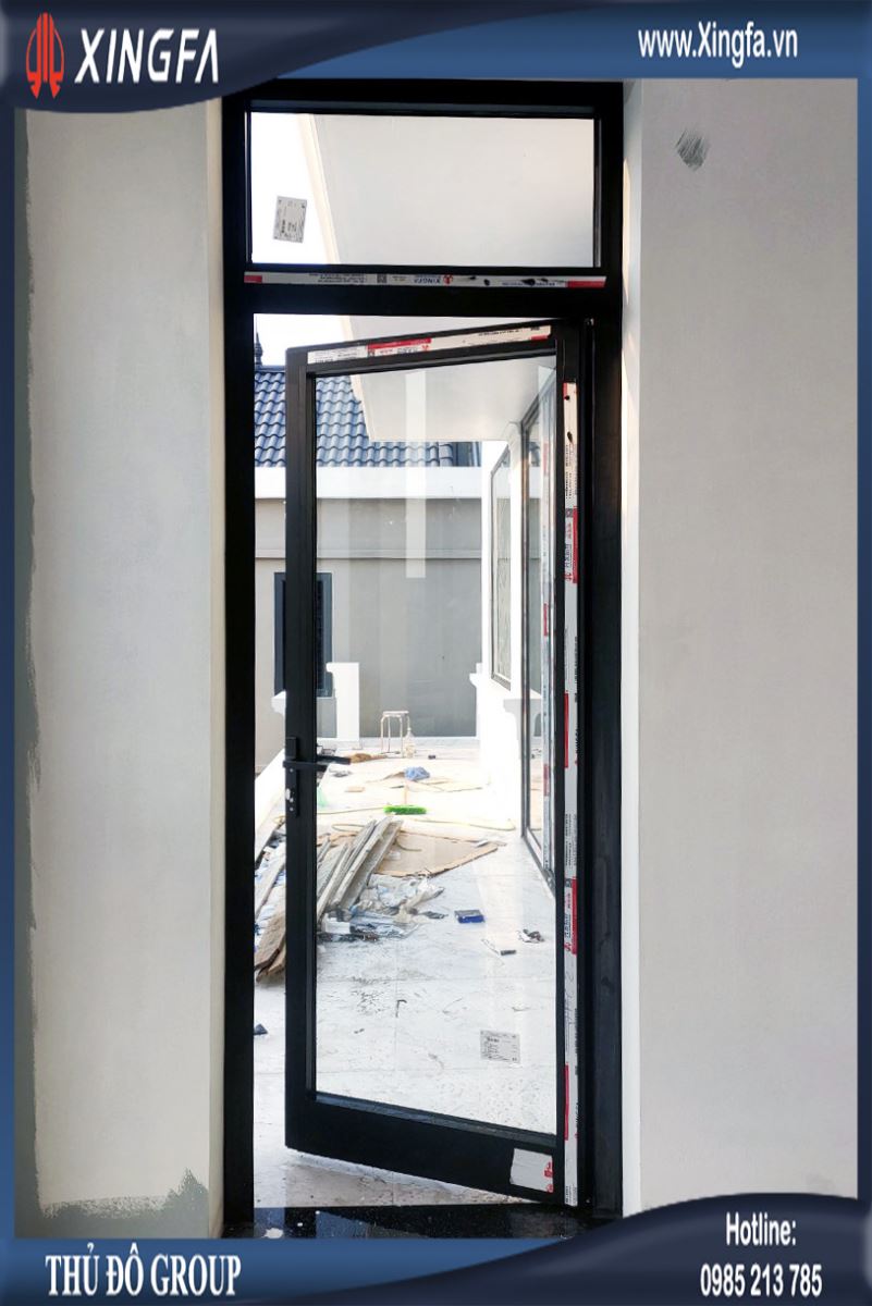 Hình ảnh một bộ cửa đi mở quay 1 cánh nhôm Xingfa tem đỏ