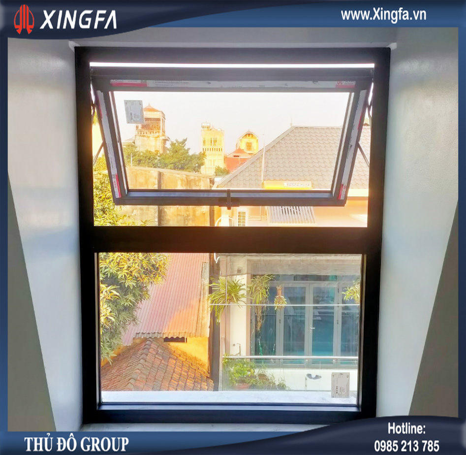 Hình ảnh cửa sổ mở hất 1 cánh nhôm Xingfa chính hãng tem đỏ