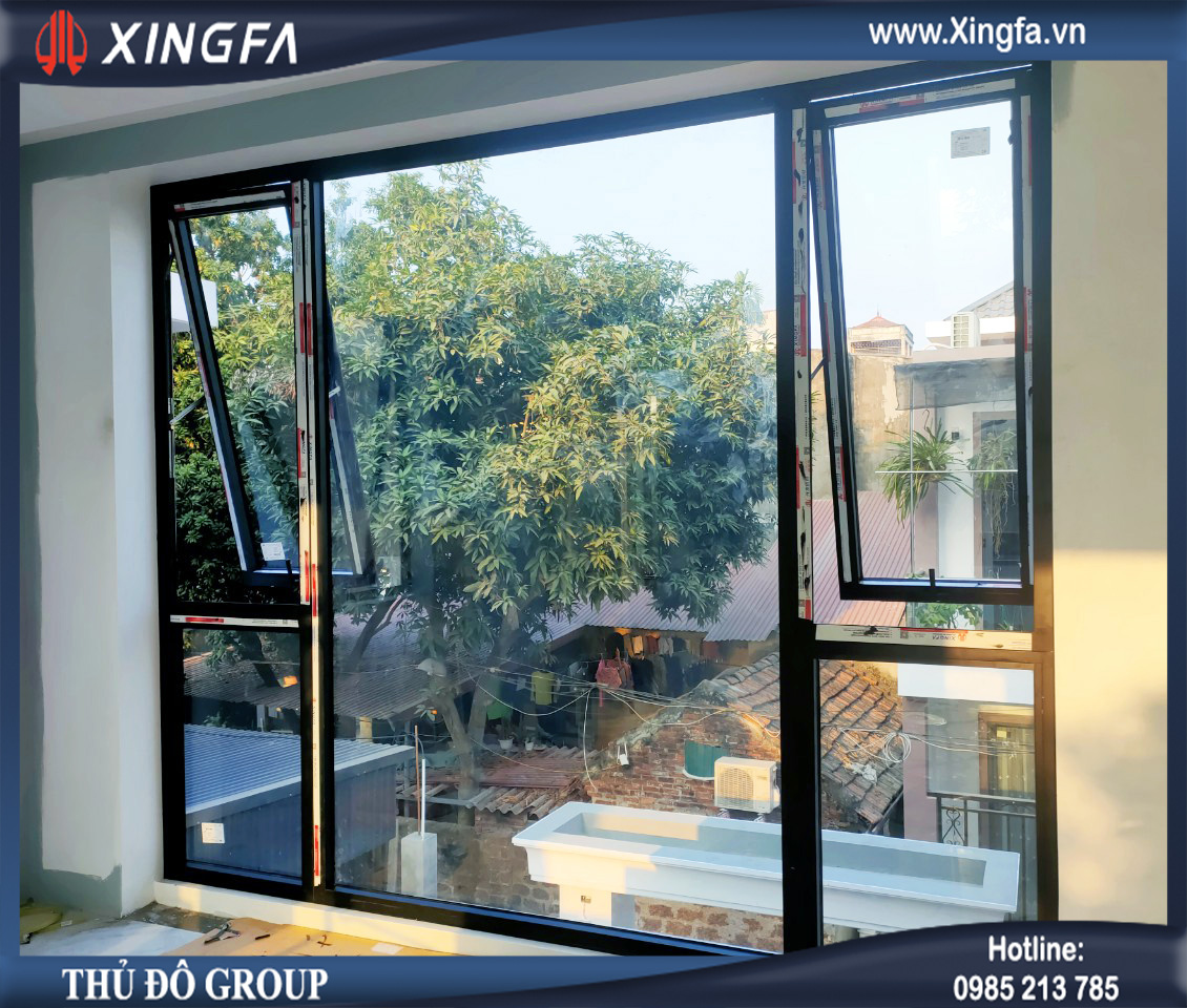Hình ảnh bộ cửa sổ mở hất nhôm Xingfa được cách điệu đẹp mắt