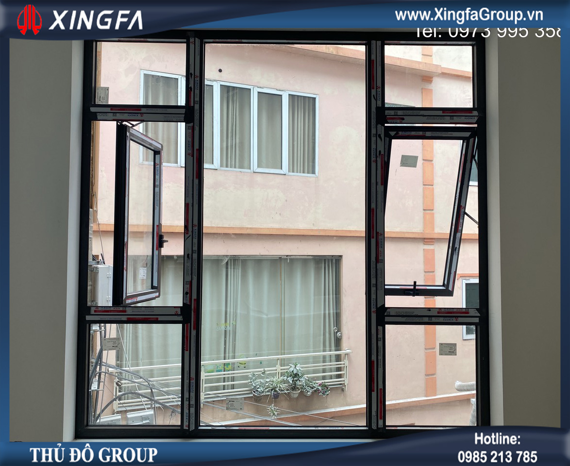 Hình ảnh cửa sổ mở quay và mở hất kết hợp vách cố định nhôm Xingfa