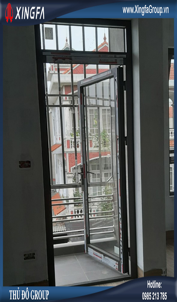 Hình ảnh cửa đi mở quay 1 cánh nhôm Xingfa lắp đặt tại ban công