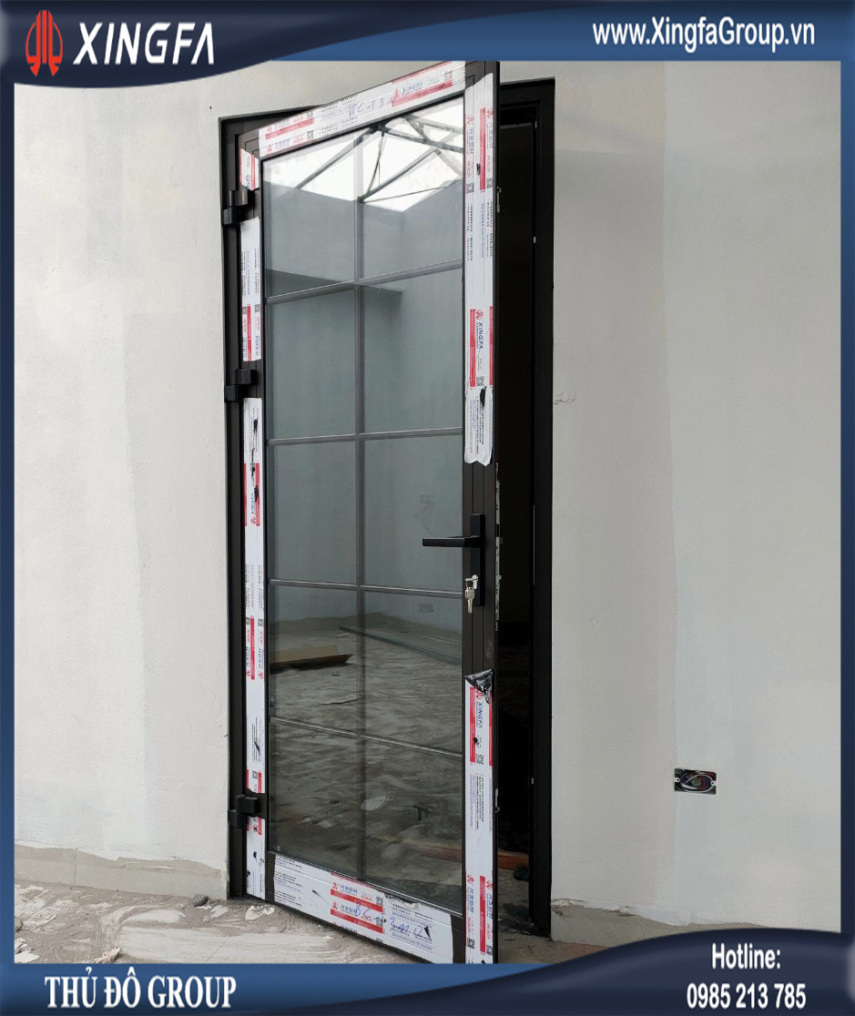 Hình ảnh cửa đi mở quay 1 cánh nhôm Xingfa tại công trình thực tế