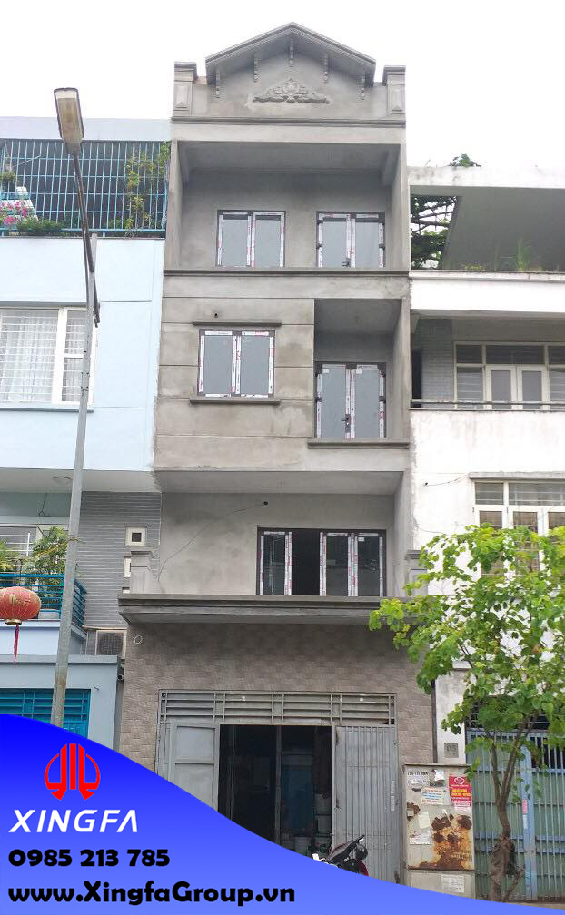 Tại công trình 4 tầng này có các bộ cửa sổ cũng như cửa đi nhôm Xingfa lắp đặt tại mặt tiền. Cửa chính được sử dụng là cửa nhôm Xingfa mở quay 4 cánh. Cửa nhôm Xingfa mở quay 4 cánh có thể đáp ứng yêu cầu khi mở cửa cần có tối đa diện tích đi lại cho nên rấ phù hợp làm cửa mặt tiền. Cửa được cấu tạo từ những thanh nhôm profile Xingfa cao cấp, bên trong khoang trống của các thanh nhôm có các đường gân trợ lực nên tạo thành khối cửa vững chắc, an toàn. Cửa nhôm Xingfa mở quay 4 cánh có đầy đủ công năng mạnh mẽ giống như cửa mở quay 2 cánh, được đánh giá là có độ cách âm và kín khít nhất trong số các mẫu cửa.