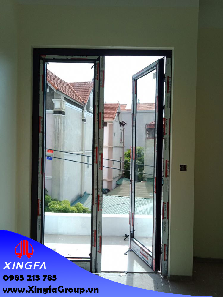 Hình ảnh cửa đi mở quay 2 cánh Xingfa nhập khẩu được lắp đặt tại ban công