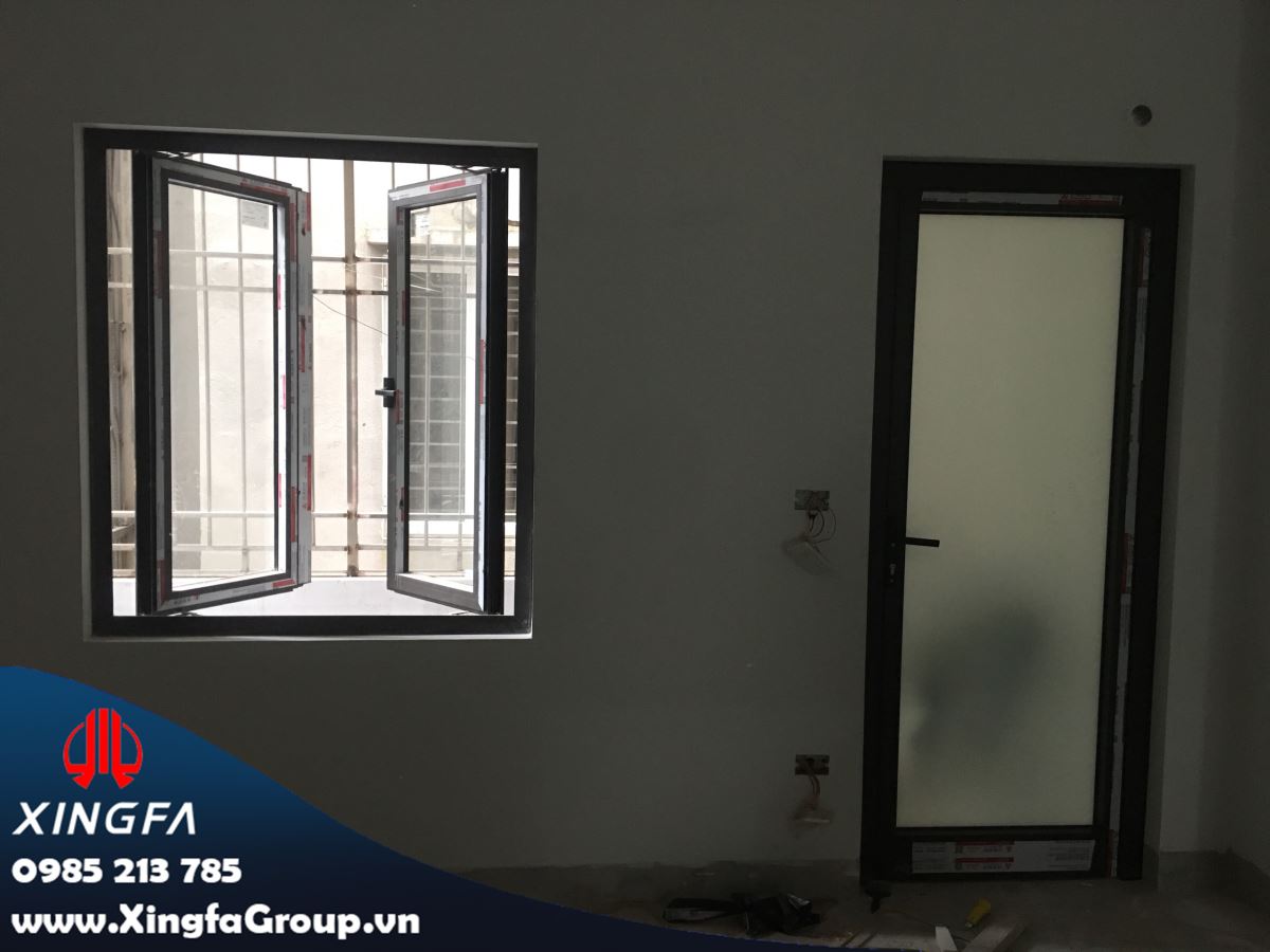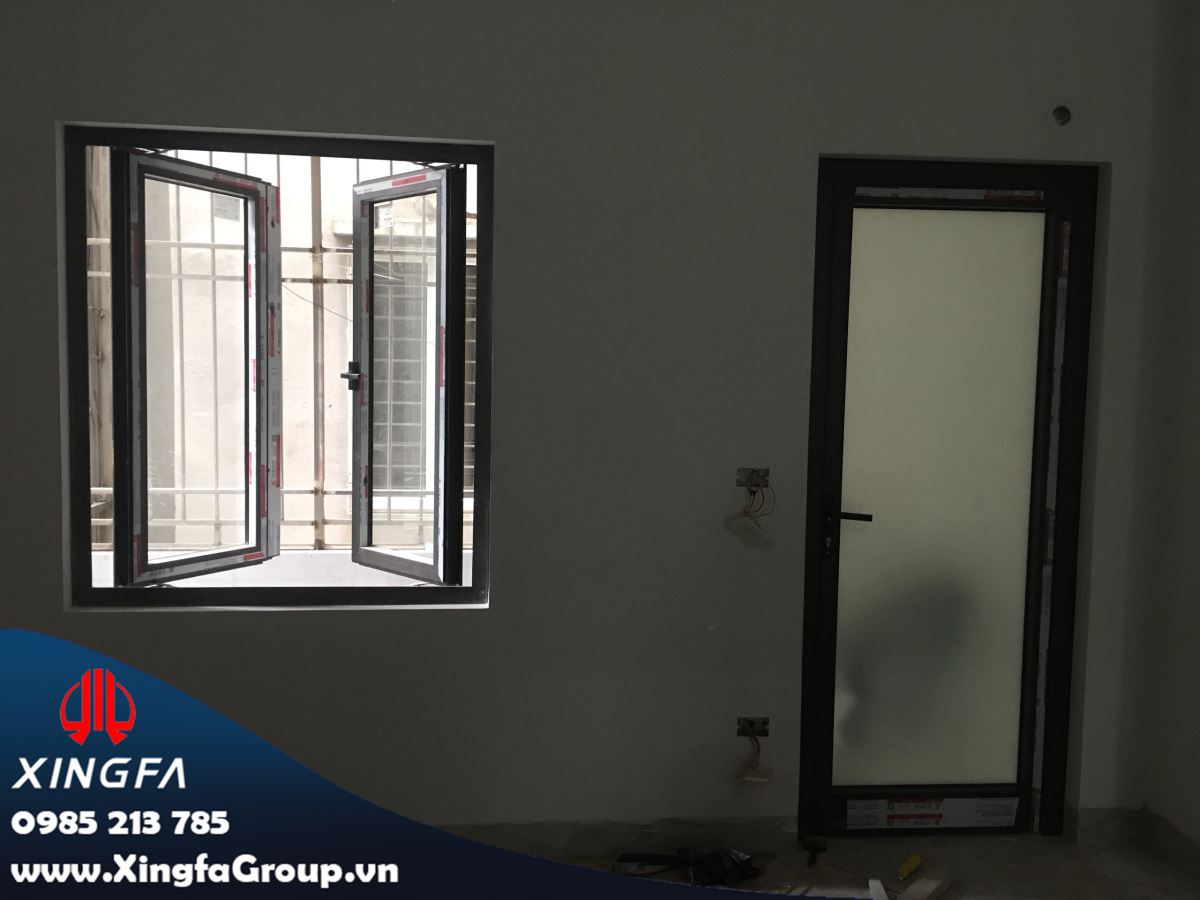 Hình ảnh cửa đi mở quay 1 cánh và cửa sổ mở quay 2 cánh nhôm Xingfa