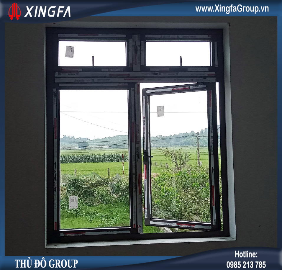 Hình ảnh cửa sổ mở quay 1 cánh nhôm Xingfa có tem đỏ chính hãng