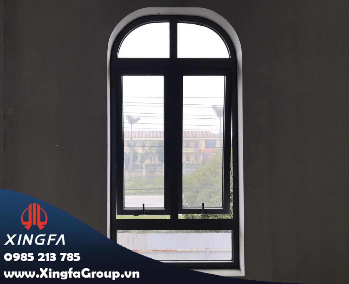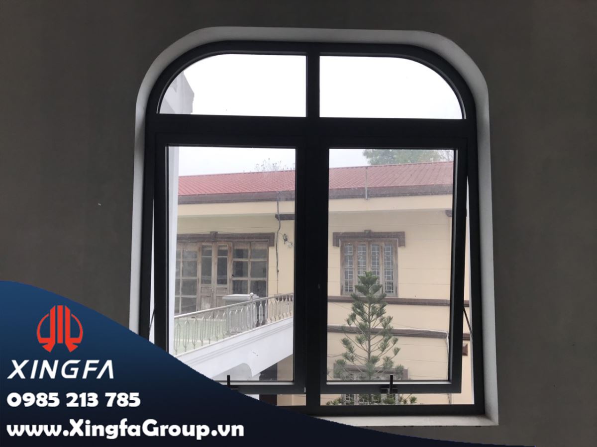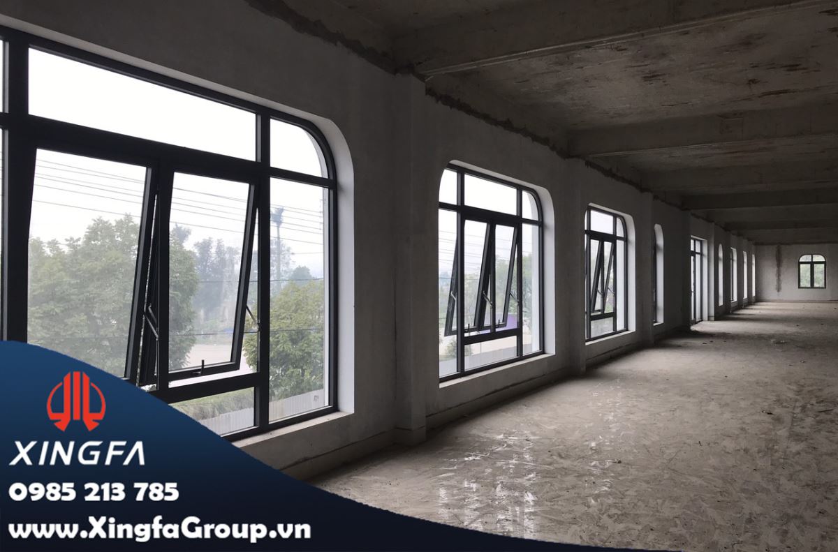 Hình ảnh cửa sổ mở hất nhôm Xingfa + vách kính mái vòm nhôm Xingfa