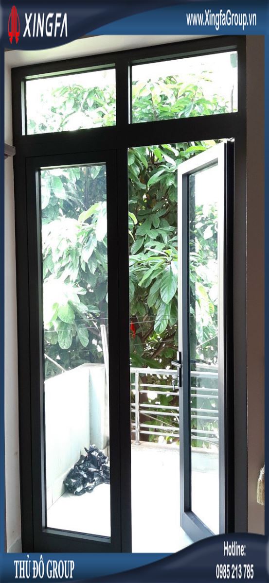Hình ảnh cửa nhôm Xingfa mở quay 1 cánh kết hợp vách kính cố định