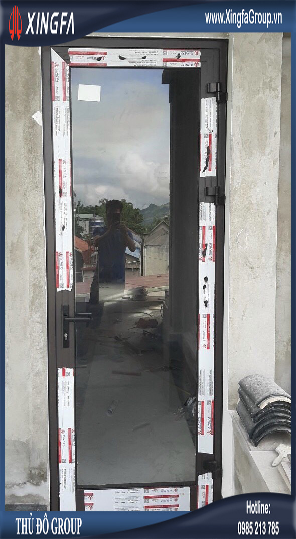 Hình ảnh cửa đi mở quay 1 cánh nhôm Xingfa nhập khẩu chính hãng
