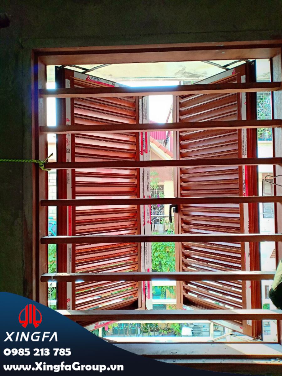 + Cửa sổ mở quay 1, 2, 3 cánh nhôm Xingfa vân gỗ hệ 55 nhập khẩu Quảng Đông