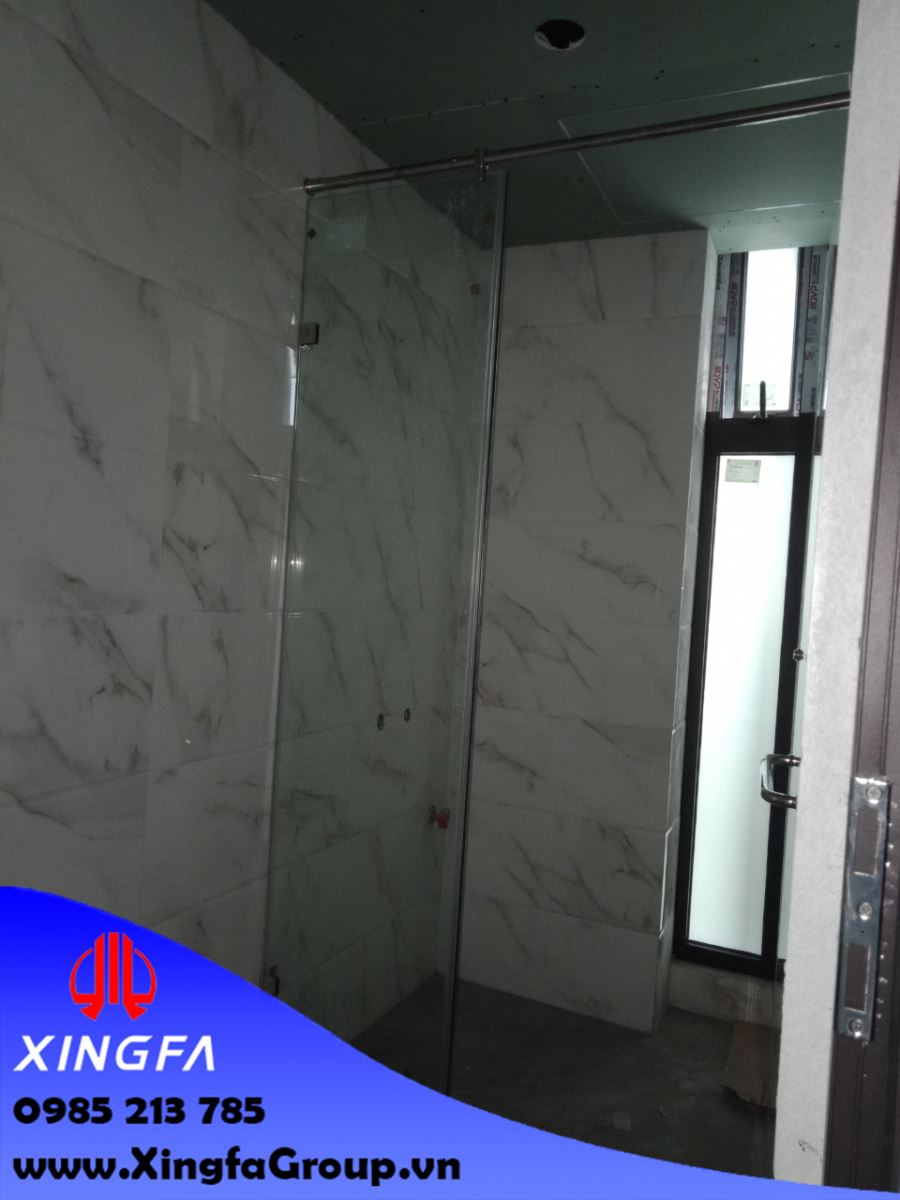 Hình ảnh cửa đi thông phòng nhôm Xingfa sử dụng kính mầu trắng sữa