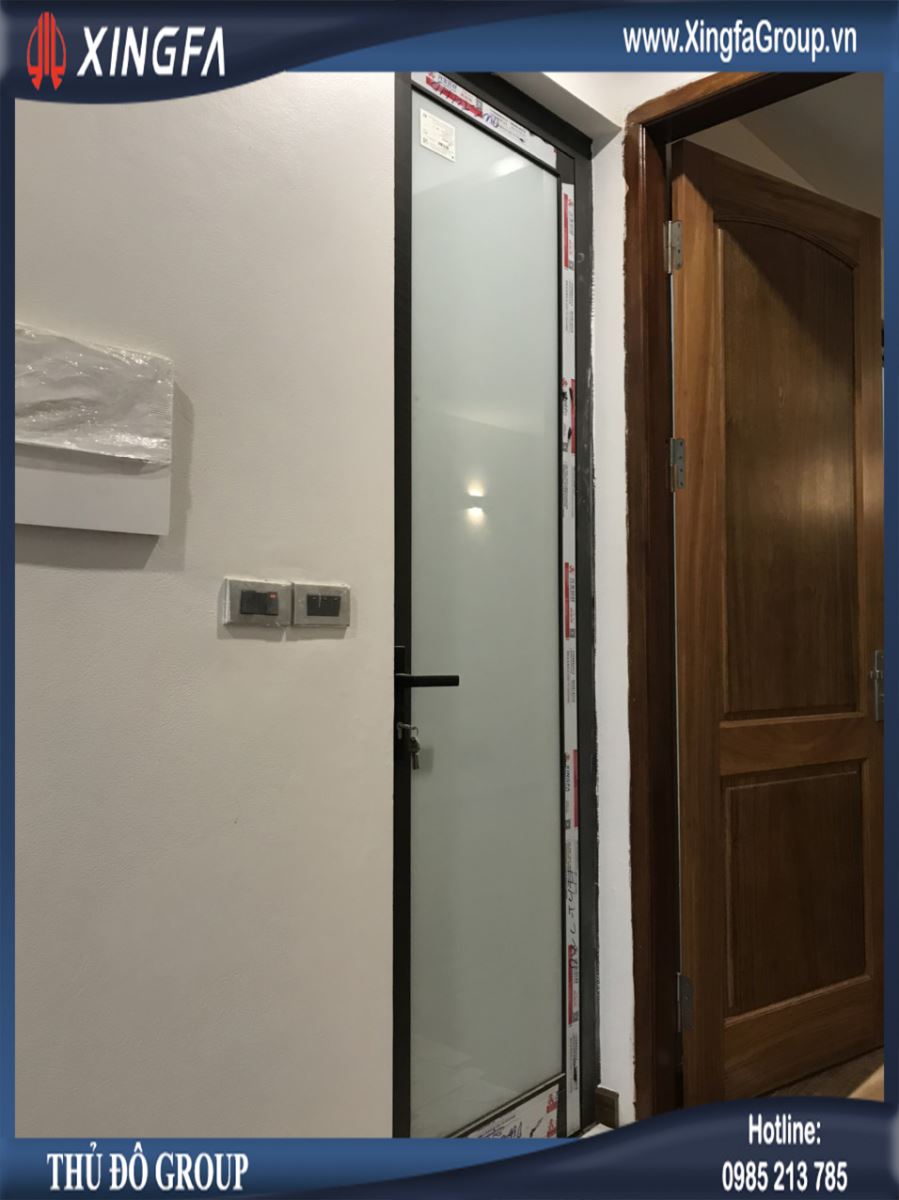 Hình ảnh cửa đi mở quay 1 cánh nhôm Xingfa với kính màu trắng sữa