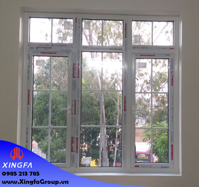 Cửa sổ nhôm Xingfa mở quay 2 cánh kết hợp vách kính cố định