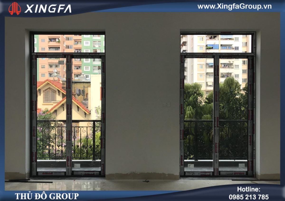 Hình ảnh cửa đi mở quay 2 cánh nhôm Xingfa nhập khẩu chính hãng