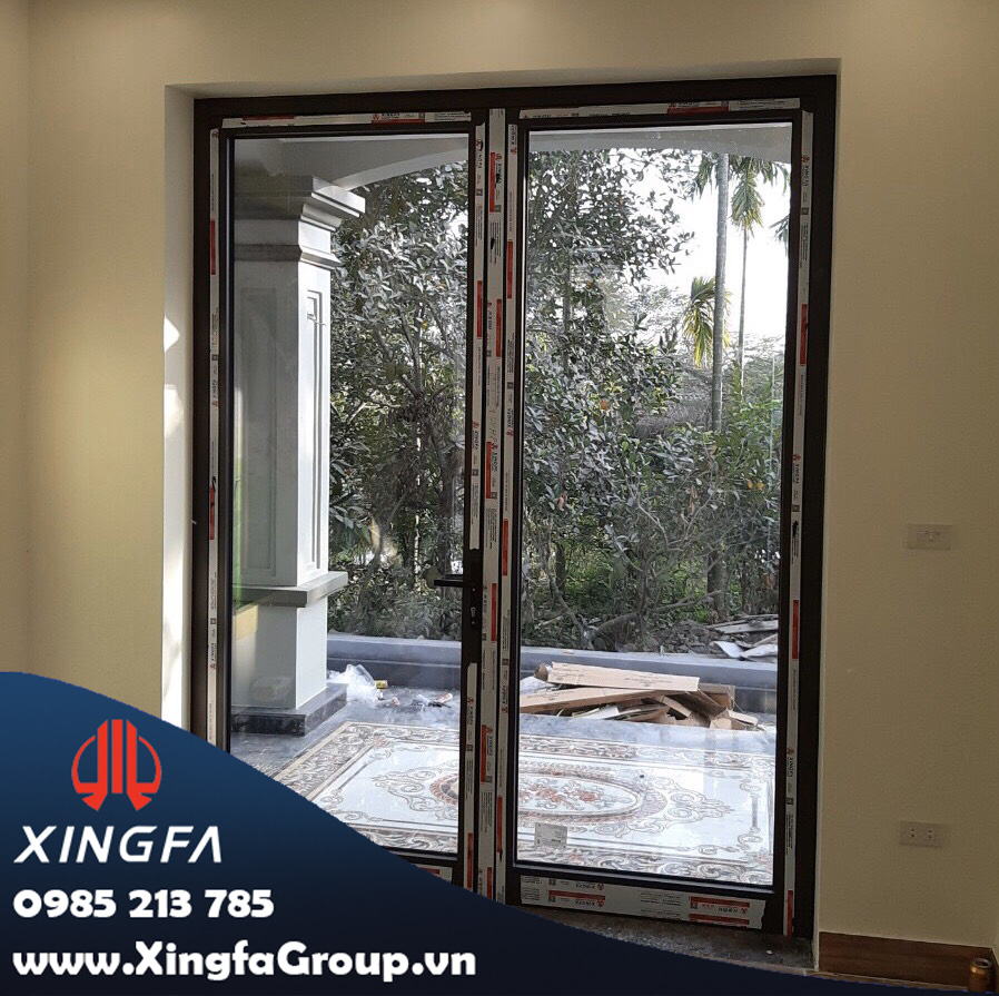 Hình ảnh cửa đi mở quay 2 cánh nhôm Xingfa nhập khẩu chính hãng