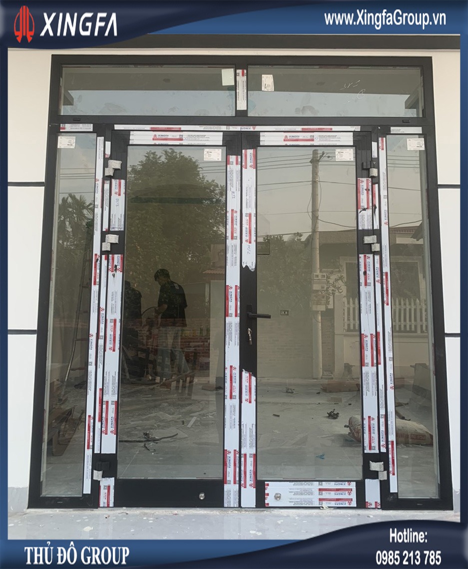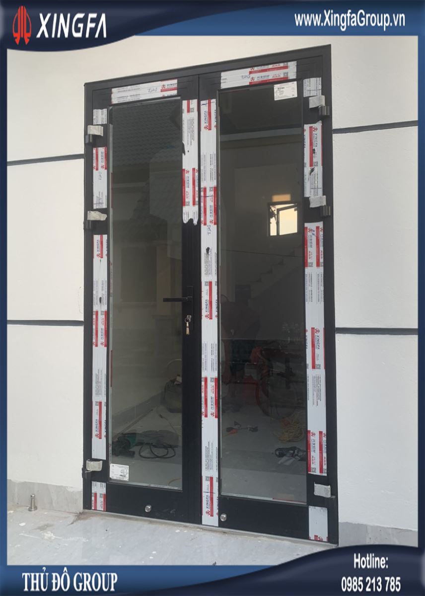 Hình ảnh cửa chính là một bộ cửa đi mở quay 2 cánh nhôm Xingfa chính hãng