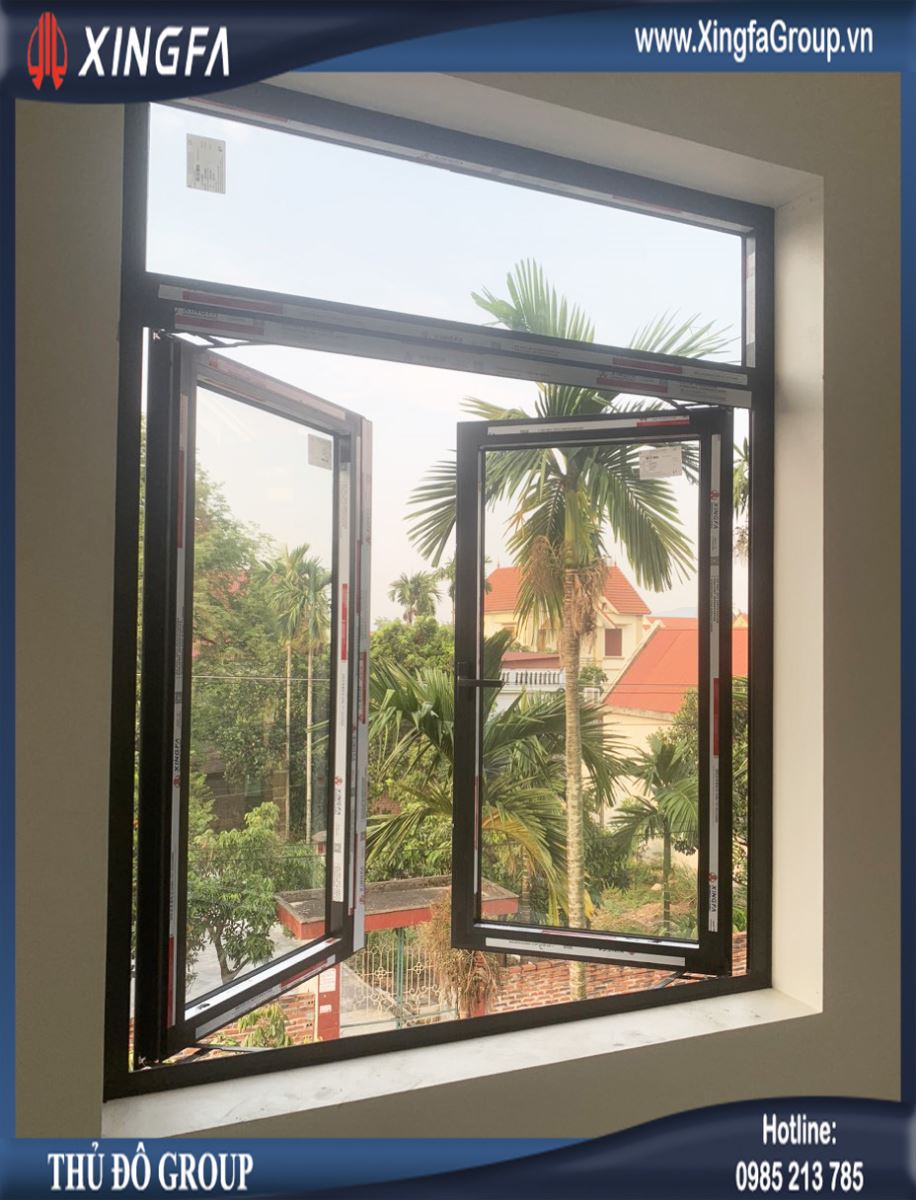 Tương tự với đó là những bộ cửa sổ mở quay 2 cánh Xingfa. Một số bộ cửa Thủ Đô Group lắp đặt được kết hợp với vách kính cố định để không còn đơn điệu nữa. Cửa sổ mở quay với ưu điểm mở được tối đa diện tích, lấy thoáng lấy gió tối đa, và khi đóng lại thì kín khít tuyệt đối. Đây cũng là mẫu cửa sổ dễ sử dụng và phổ biến nhất hiện nay, có thể thấy ở hầu hết mọi công trình nhà ở.