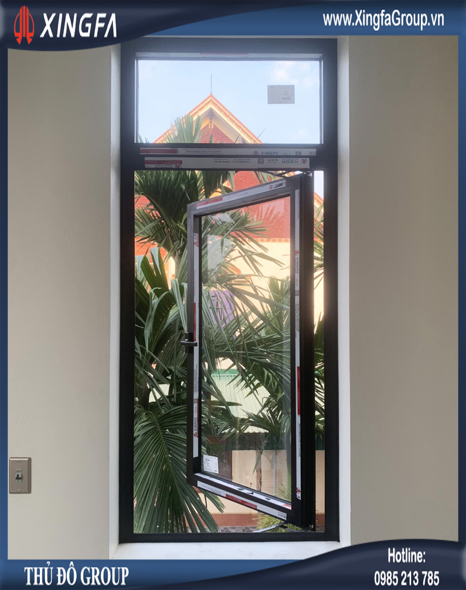 Hình ảnh cửa sổ nhôm Xingfa mở quay 1 cánh có vách cố định bên trên
