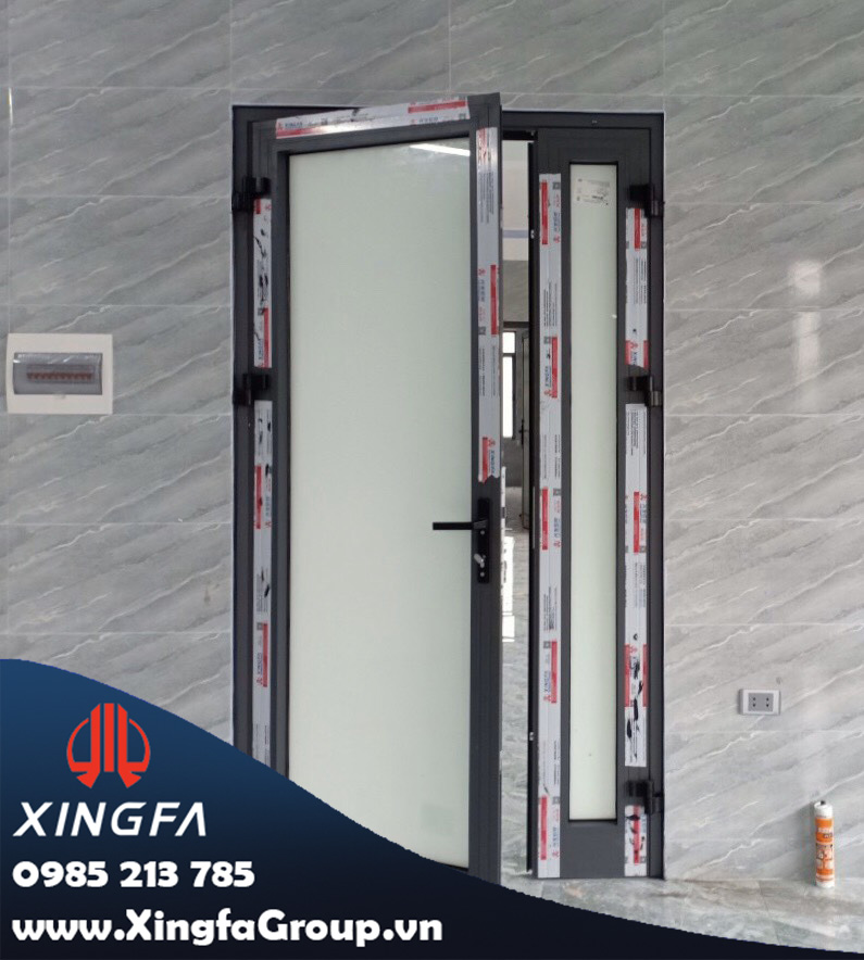 Hình ảnh cửa đi mở quay 1 cánh nhôm Xingfa sử dụng kính trắng sữa