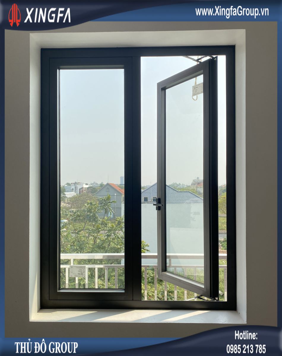 Hình ảnh mẫu cửa sổ mở hất 1 cánh nhôm Xingfa hệ 55 có độ dày 1.4mm