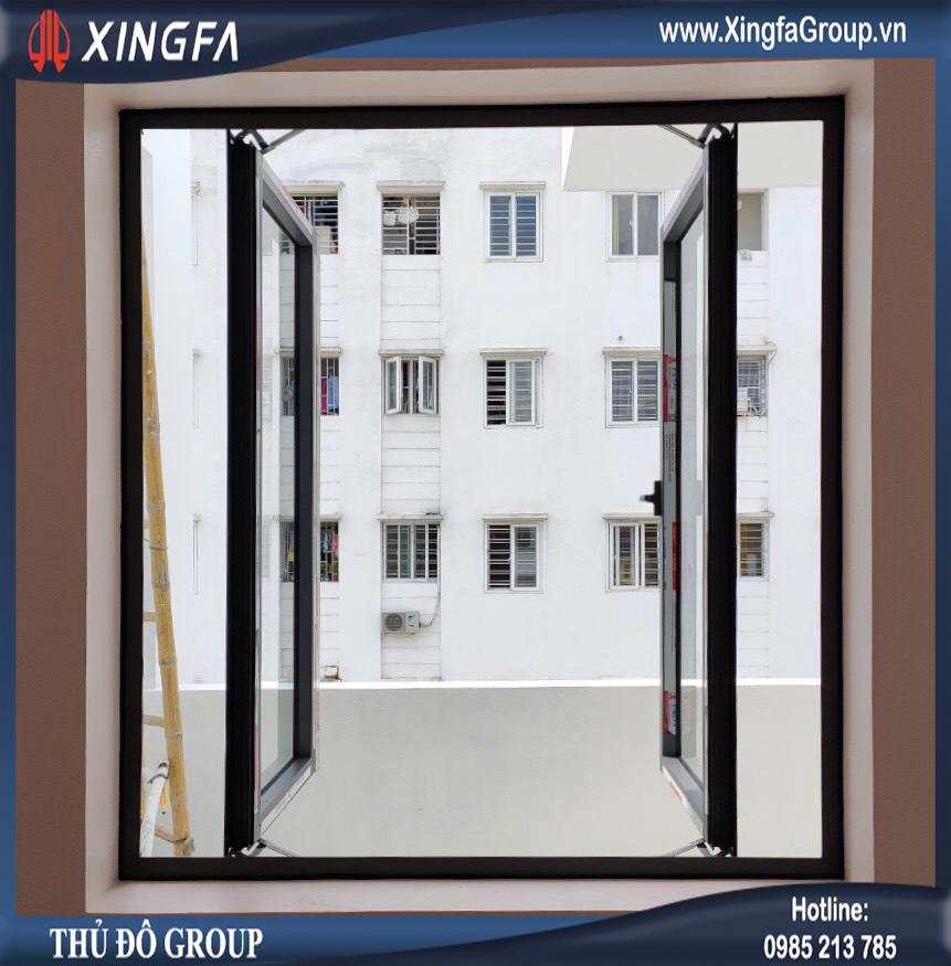 Hình ảnh mẫu cửa sổ mở quay 2 cánh nhôm Xingfa chính hãng 100%