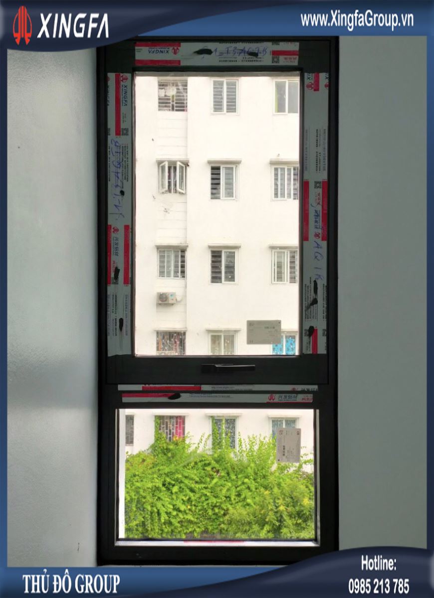 Hình ảnh bộ cửa sổ mở hất 1 cánh nhôm Xingfa tem đỏ chính hãng