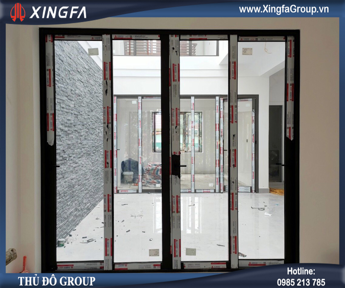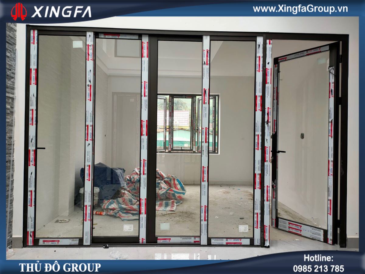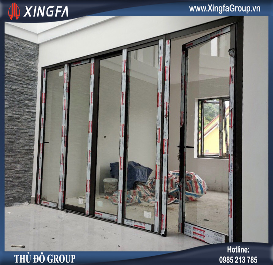 Hình ảnh cửa đi mở trượt 4 cánh nhôm Xingfa chính hãng nhập khẩu