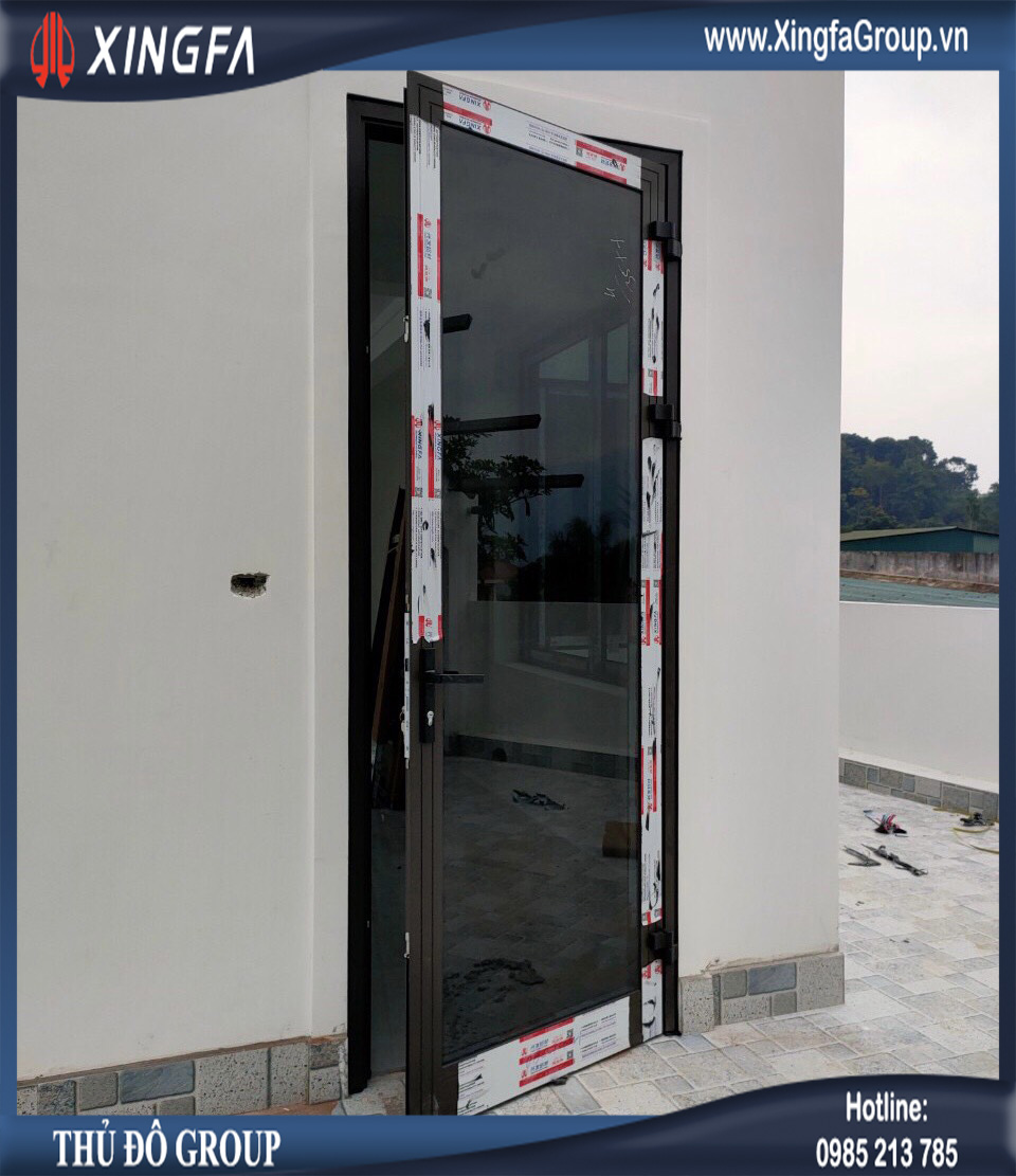 Hình ảnh một mẫu cửa đi mở quay 1 cánh nhôm Xingfa nhập khẩu hệ 55