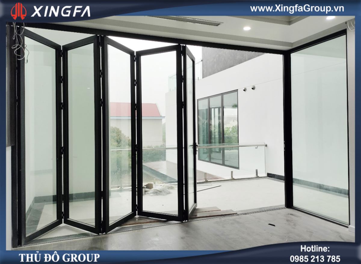 Hình ảnh cửa đi mở xếp trượt gấp nhôm Xingfa kích thước lớn chia nhiều cánh