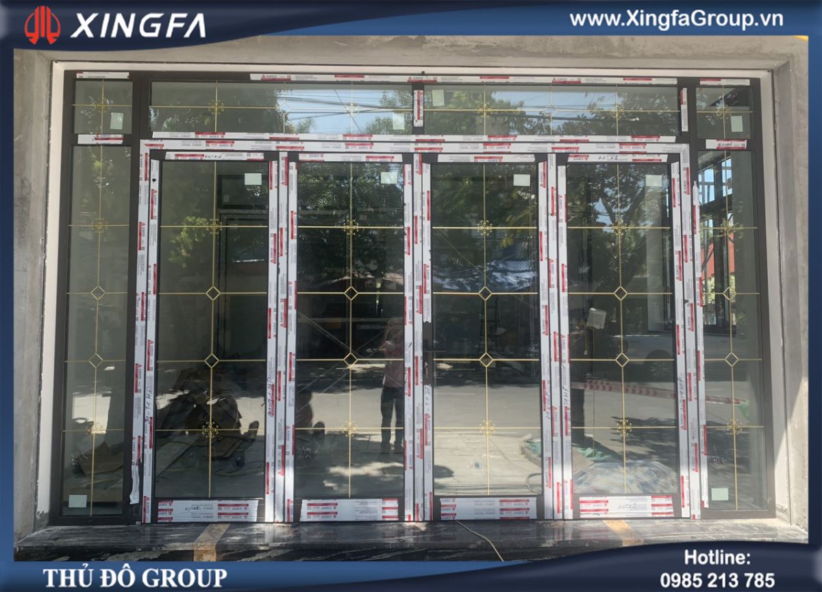 Đầu tiên Thủ Đô Group gửi tới quý khách hình ảnh và thông tin về mẫu cửa đi mở quay nhôm Xingfa. Cửa nhôm Xingfa mở quay 1 cánh, 2 cánh, hay 4 cánh đều rất phổ biến vì chúng tiện lợi, dễ sử dụng, phù hợp với nhiều vị trí tại công trình. Cửa nhôm Xingfa Thủ Đô Group được sản xuất từ một loại duy nhất là nhôm Xingfa nhập khẩu 100% tem đỏ Quảng Đông. Không có loại 1 loại 2 giống như các đơn vị nhỏ lẻ chào bán, đảm bảo nguồn gốc và chất lượng cho khách hàng. Và ở đây bộ cửa đi mở quay 4 cánh đã được lắp đặt ngay tại mặt tiền, cùng với nan đồng trang trí đã trở nên rất đẹp mắt.