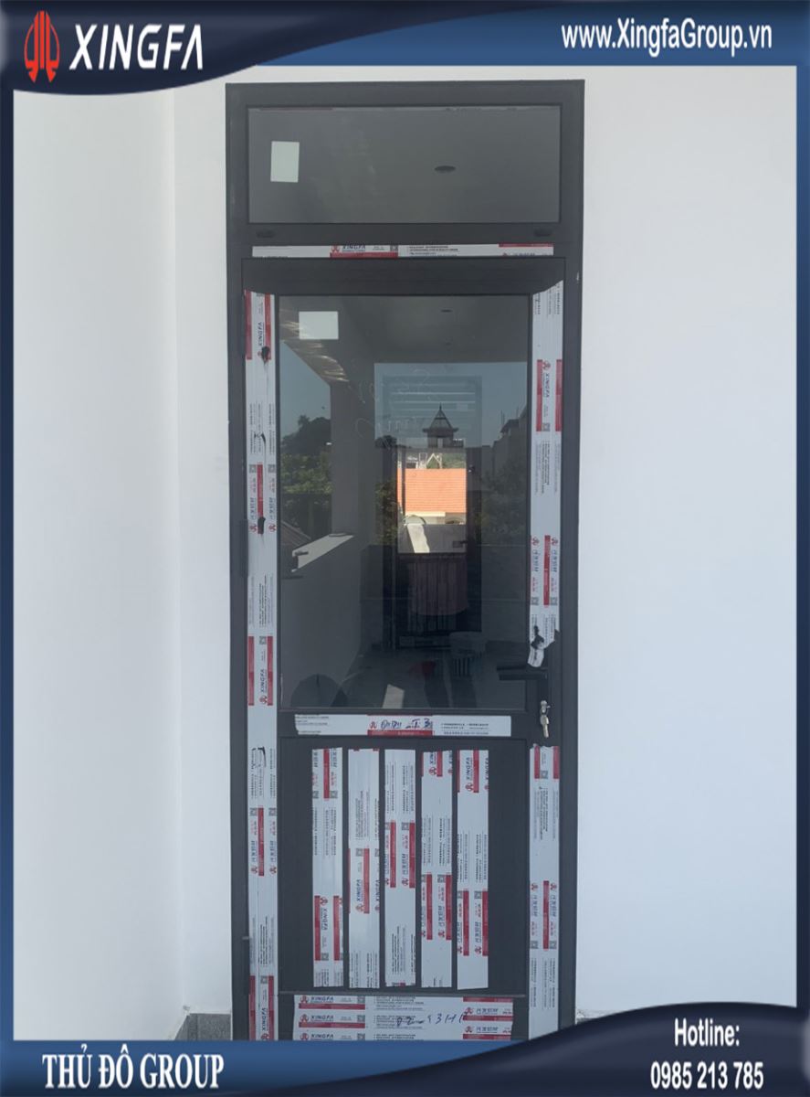 + Cửa đi mở quay 1 cánh kết hợp trên kính dưới pano nhôm Xingfa chính hãng