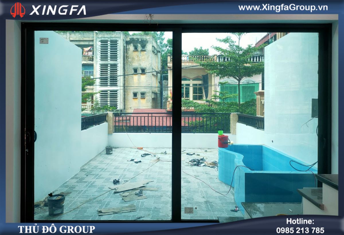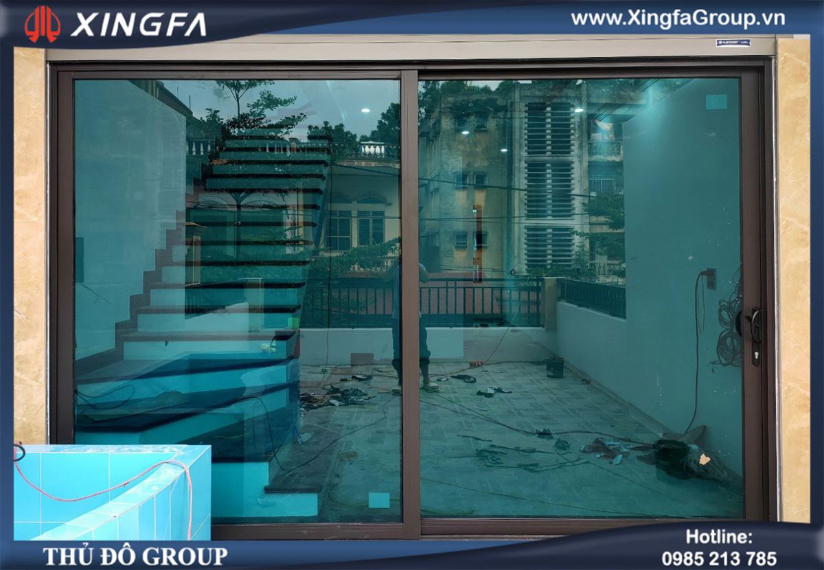 Hình ảnh cửa đi mở trượt 2 cánh nhôm Xingfa nhập khẩu Thủ Đô Group