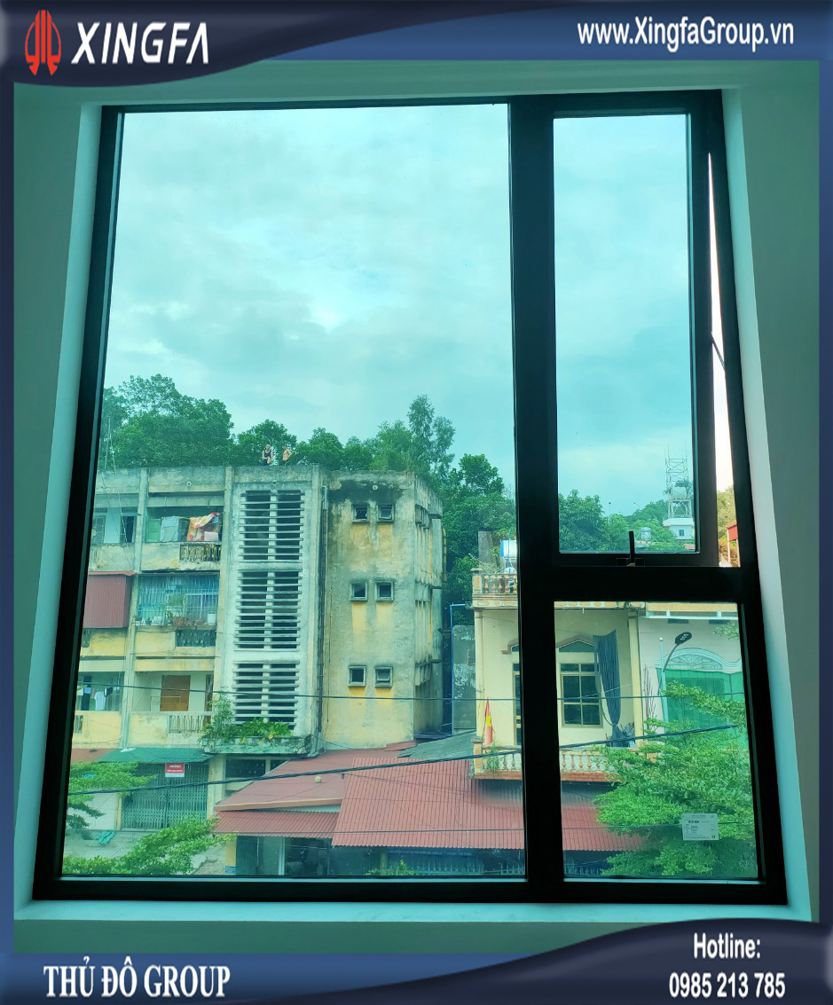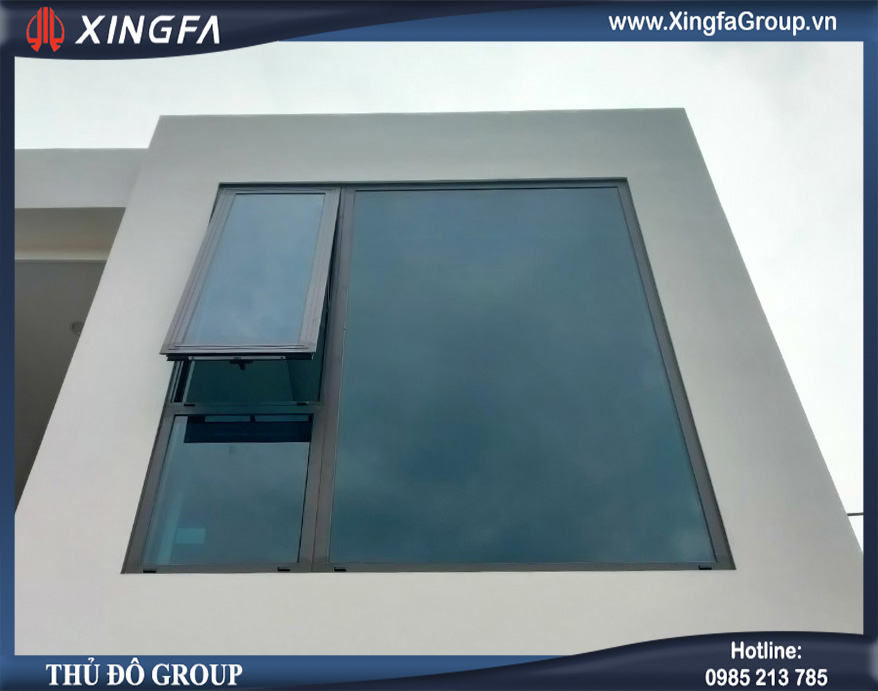 Hình ảnh cửa sổ mở hất nhôm Xingfa + vách kính cố định nhôm Xingfa