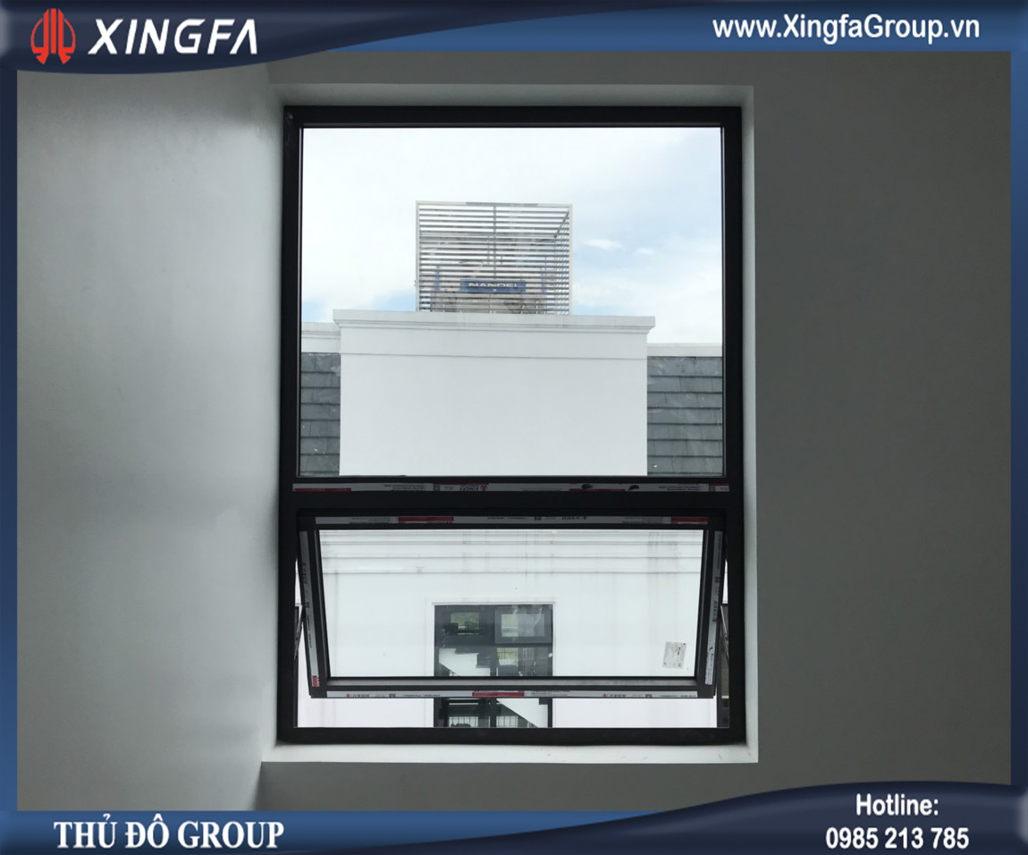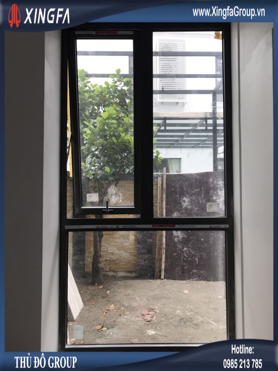 Hình ảnh cửa sổ mở hất nhôm Xingfa thiết kế 1 cánh trên 1 cánh dưới
