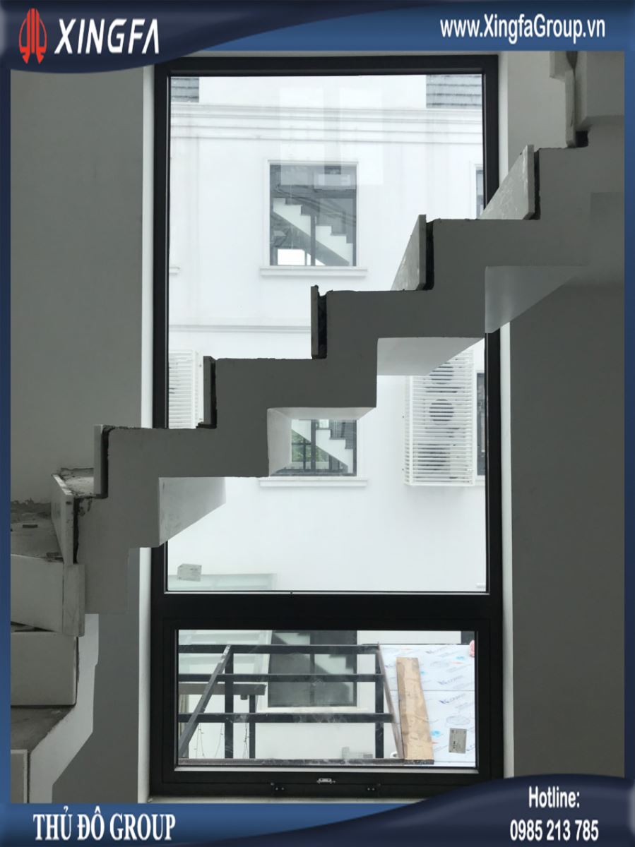 Hình ảnh cửa sổ nhôm Xingfa mở hất kết hợp vách cố định nhôm Xingfa