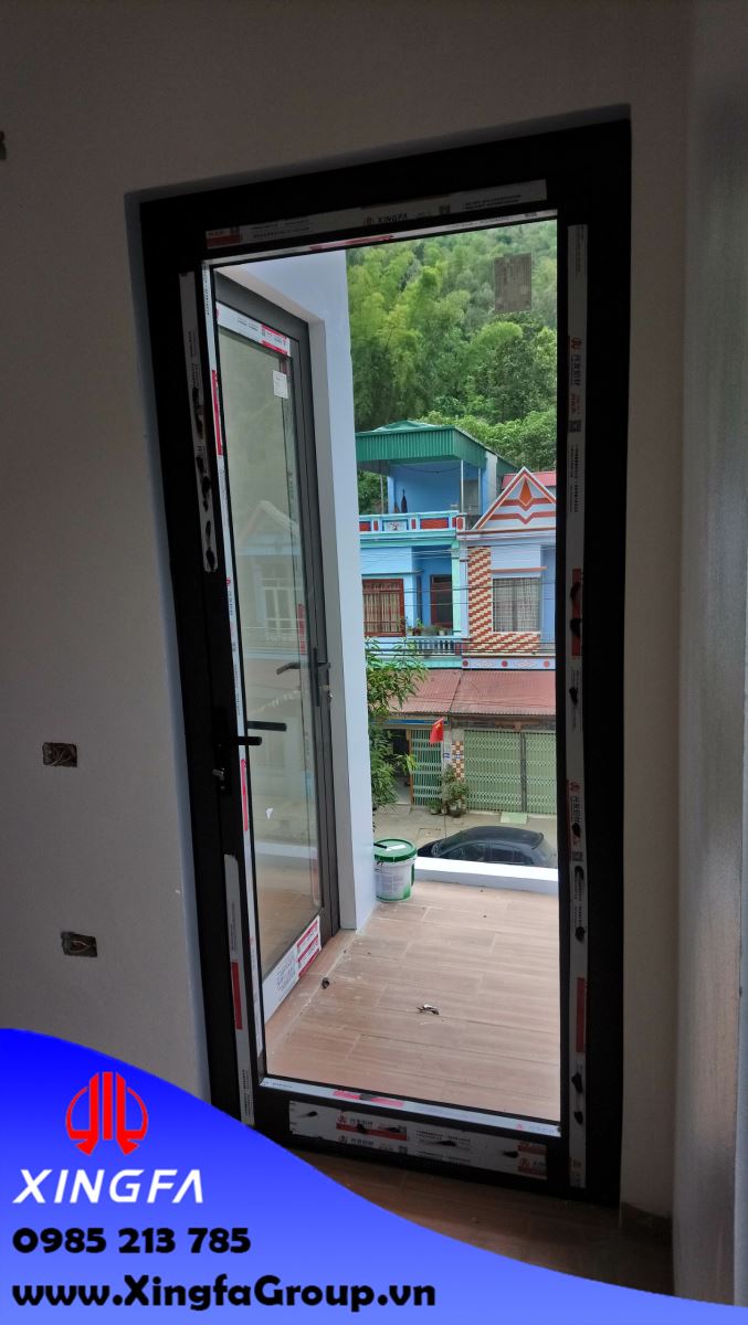 Hình ảnh cửa ban công mở quay 1 cánh nhôm Xingfa hệ 55 độ dầy 2.0mm
