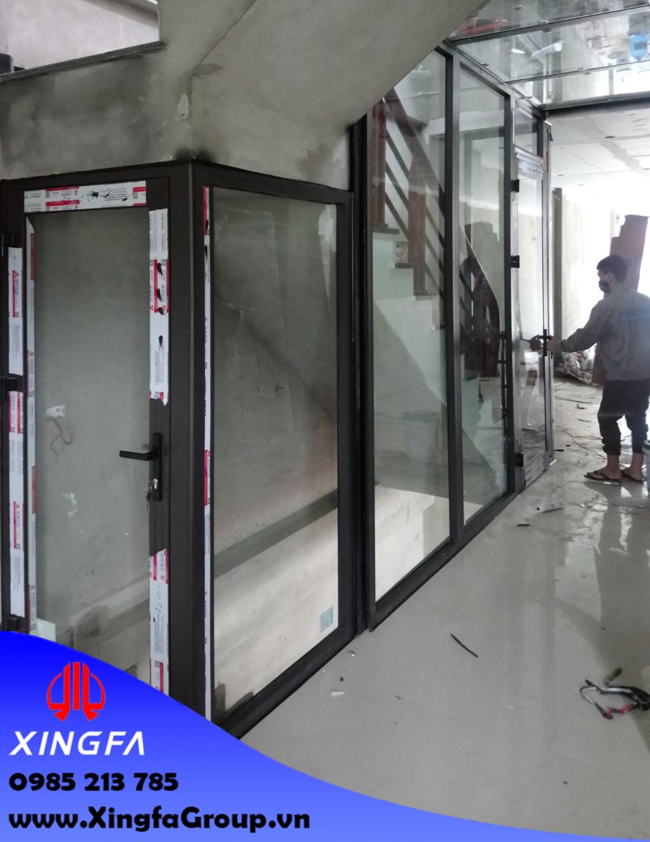 Hình ảnh vách cố định nhôm Xingfa + cửa đi mở quay 1 cánh nhôm Xingfa