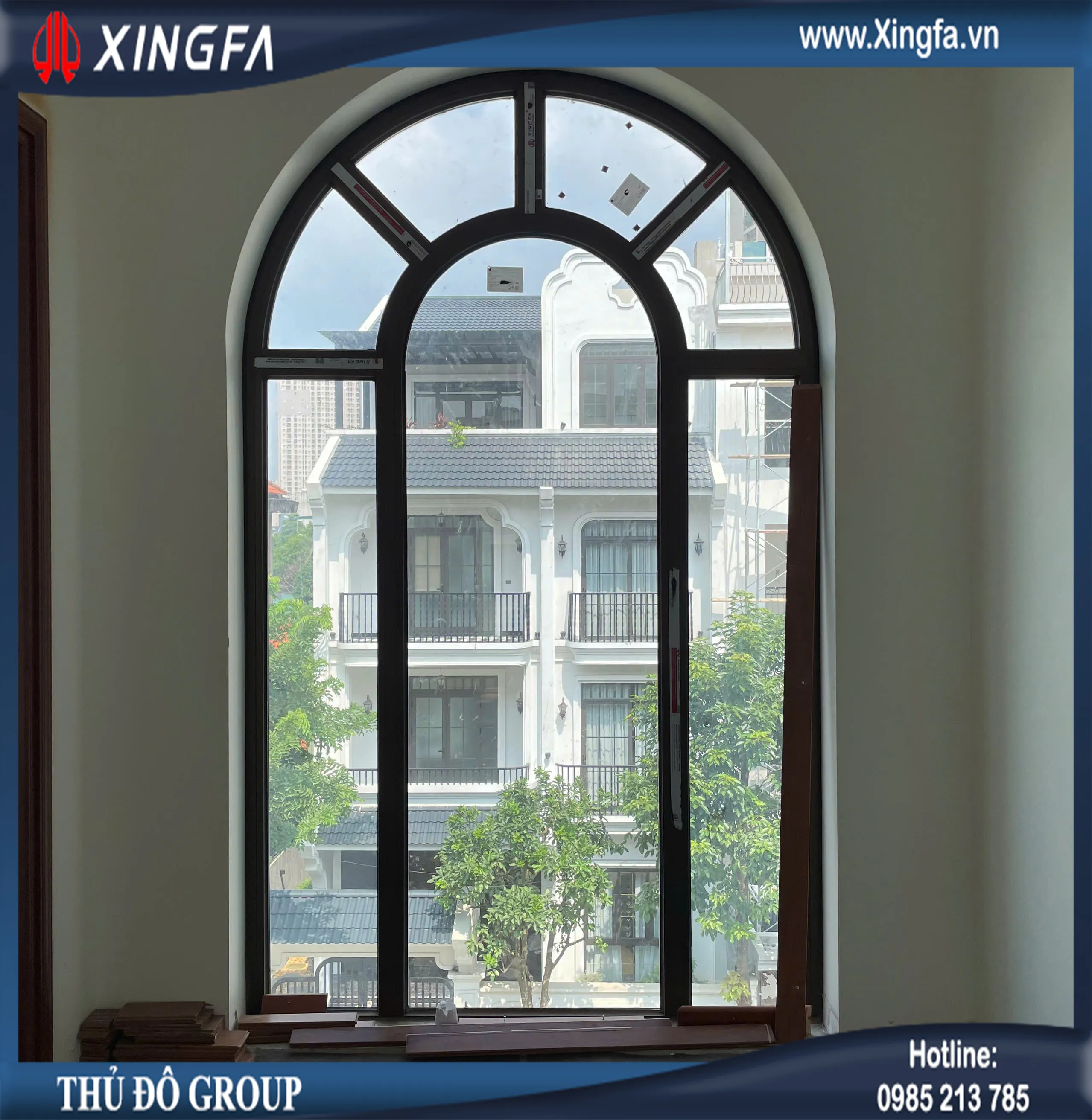 Hình ảnh vách kính cố định uốn vòm nhôm Xingfa nhập khẩu