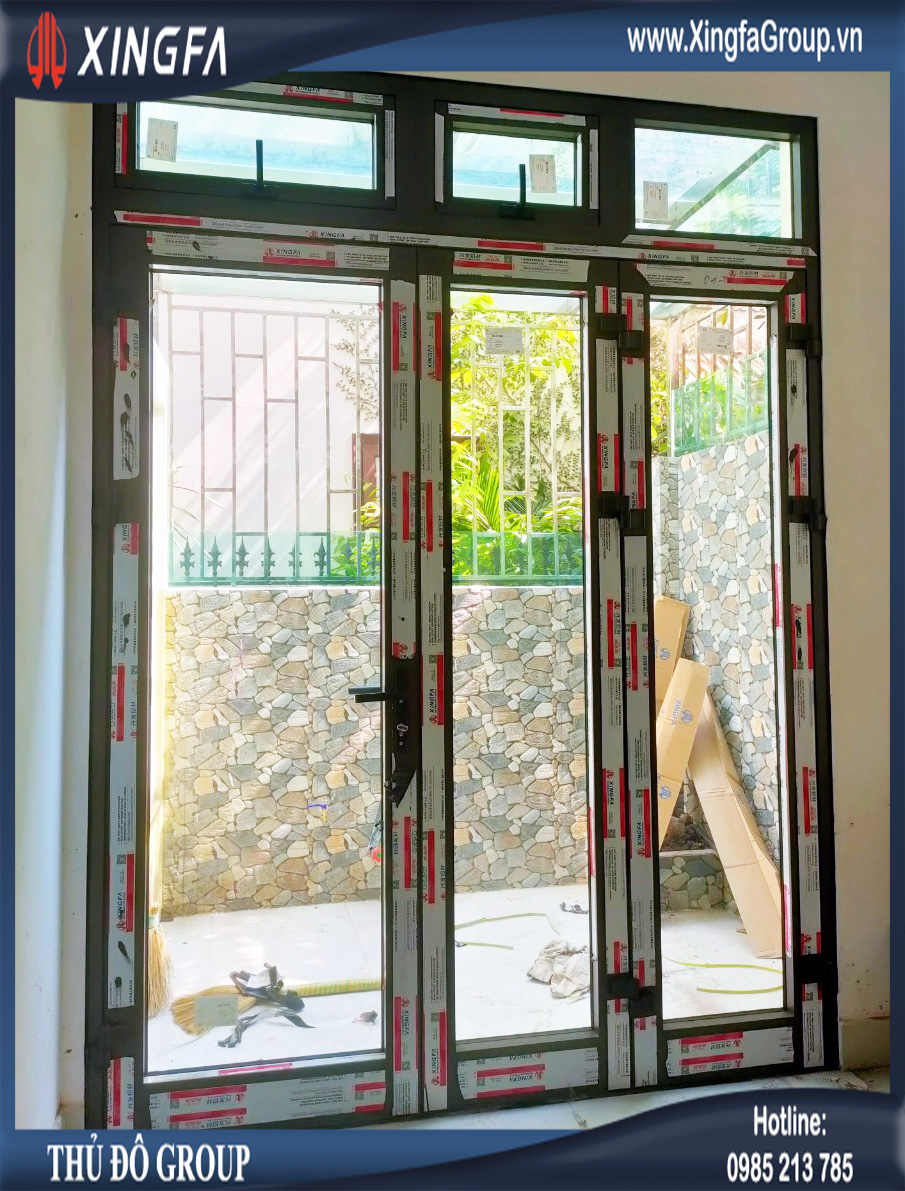 Hình ảnh bộ cửa đi mở quay 3 cánh nhôm Xingfa chính hãng hệ 55