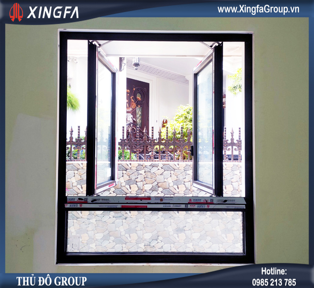 + Cửa sổ mở quay 2 cánh và vạch kính cố định nhôm Xingfa chính hãng