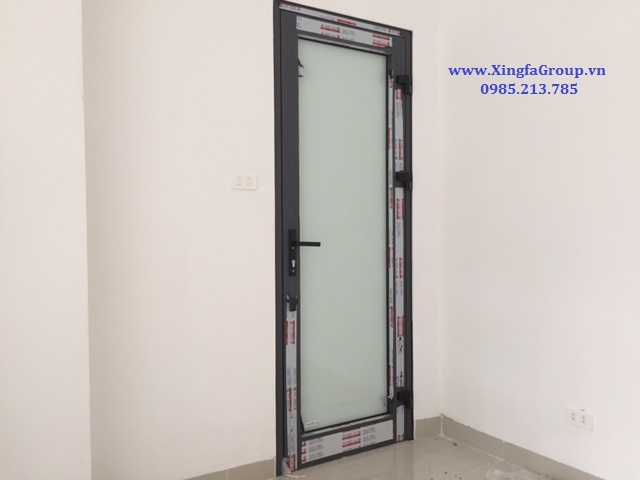 Mẫu số 1: Mẫu cửa đi mở quay 1 cánh nhôm Xingfa dùng kính mờ phun sữa
